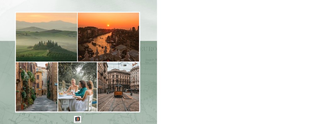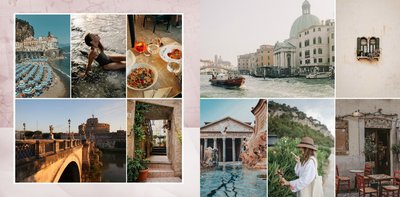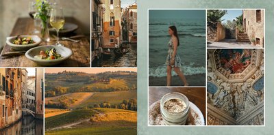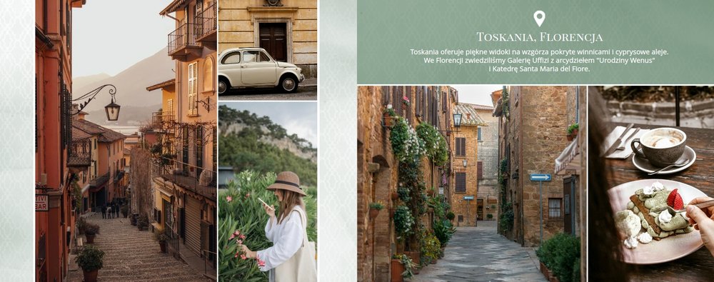 Kolejna odsłona szablonu fotoksiążki z kolekcji podróżniczej, stworzona z myślą o zachwycających Włoszech.