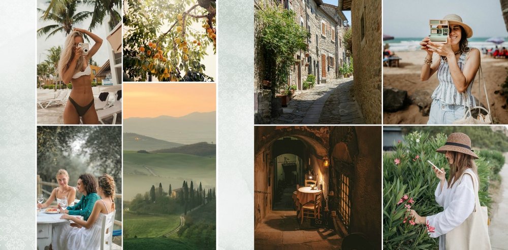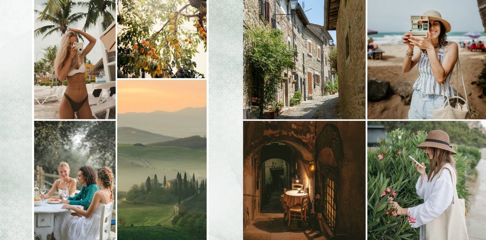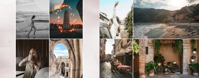 Kolekcja podróżniczych szablonów daje Ci możliwość zachować wspomnienia z odkrytych przez Ciebie zakątków świata w spójnej stylistyce.