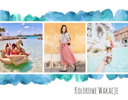 Kolorowe wakacje to barwny szablon z ciekawym motywem akwareli - idealny na Wasze letnie wspomnienia. Szablon jest uniwersalny, dlatego wakacyjna fotoksiążka może stać się zbiorem wyjazdowych wspomnień z całego roku, ale również z podróży z konkretnego miejsca np. z polskich gór, z nad morza, Mazur czy egzotycznej zagranicznej wycieczki. Oryginalne układy zdjęć i kontrast białych teł z kolorowymi akwarelami pięknie zaprezentuje się jako wydrukowana fotoksiążka.