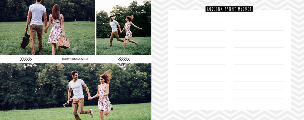 Księga Gości to szablon, który stanie się zbiorem pięknych zdjęć Nowożeńców i wzruszających wpisów gości weselnych. Szablon charakteryzuje minimalizm, proste układy, subtelna grafika, kolory szarości i czerni oraz specjalne zaprojektowane strony na podpisy dla gości weselnych. Fotoksiążka z tym szablonem to pamiątka, która pozostanie z Młodą Parą na lata. Szablon Księga Gości tworzy serię razem z szablonem Bardzo Bardzo Dziękujemy - z podziękowaniami dla rodziców Młodej Pary oraz Bardzo Bardzo Kocham Cię - wyjątkowym szablonem ślubnym.