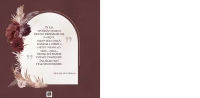 - miejsce z cytatem na ostatniej stronie projektu. Możesz zachować tam dowolny tekst - ulubioną sentencję, fragment piosenki, który jest dla Was ważny (przykładowo, korzystając z utworu wybranego na pierwszy taniec) lub motto, którym Ty i Twój partner się kierujecie;