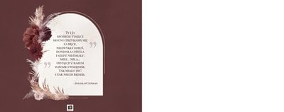 - miejsce z cytatem na ostatniej stronie projektu. Możesz zachować tam dowolny tekst - ulubioną sentencję, fragment piosenki, który jest dla Was ważny (przykładowo, korzystając z utworu wybranego na pierwszy taniec) lub motto, którym Ty i Twój partner się kierujecie;