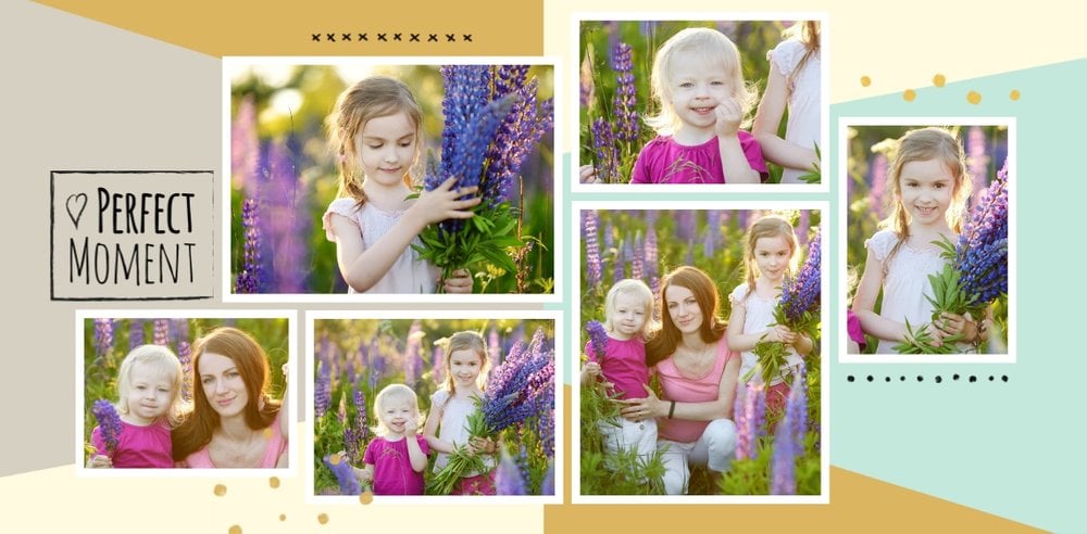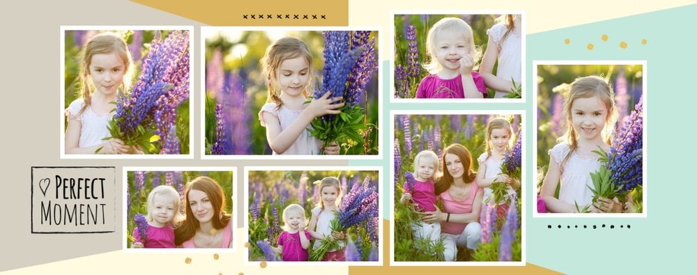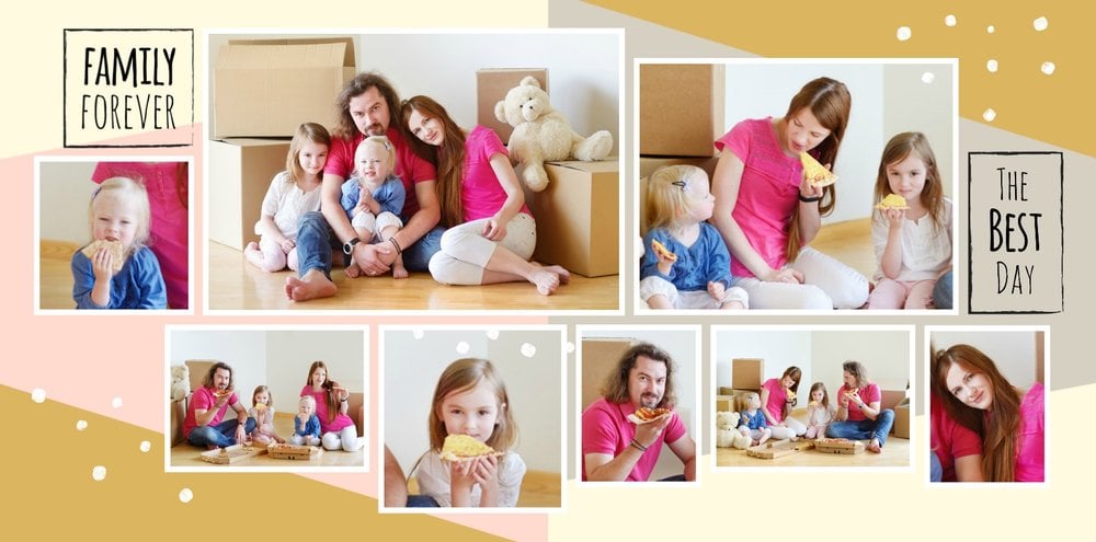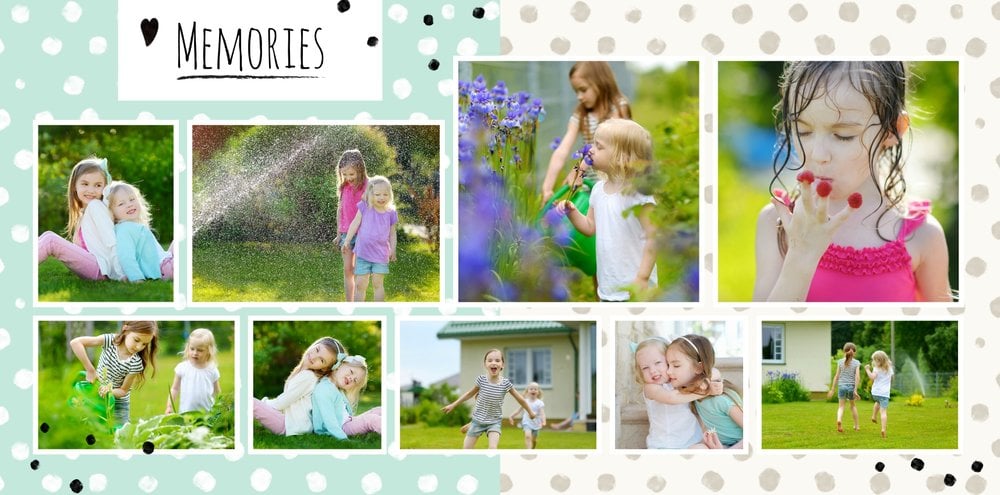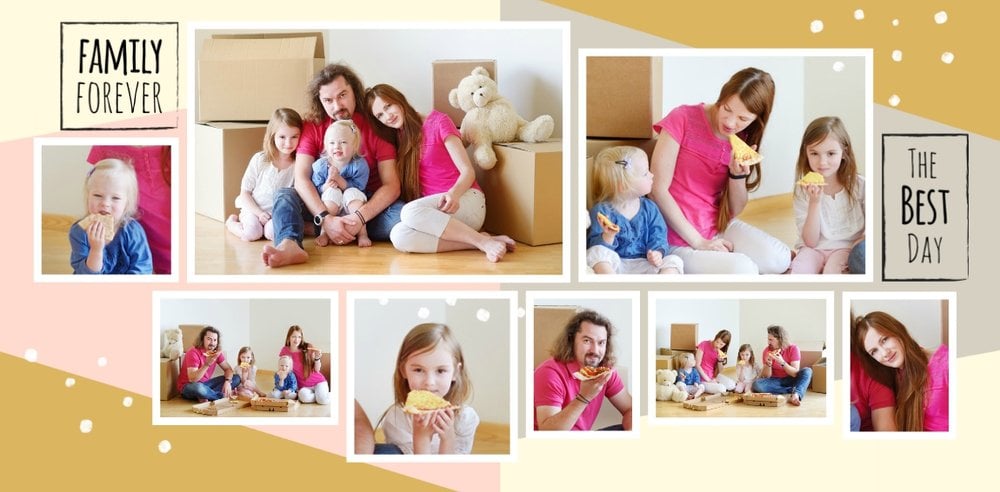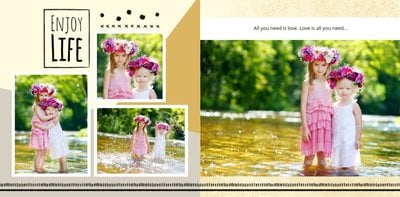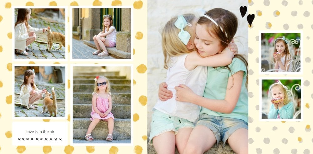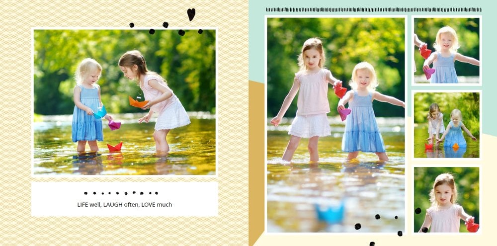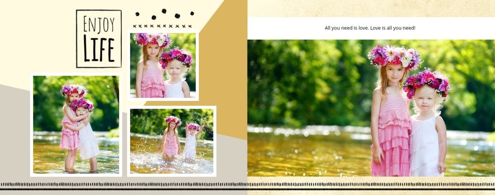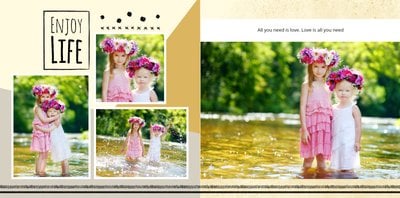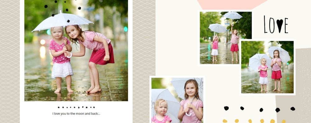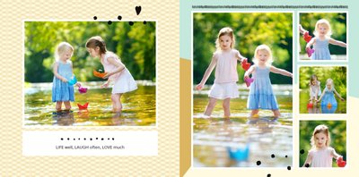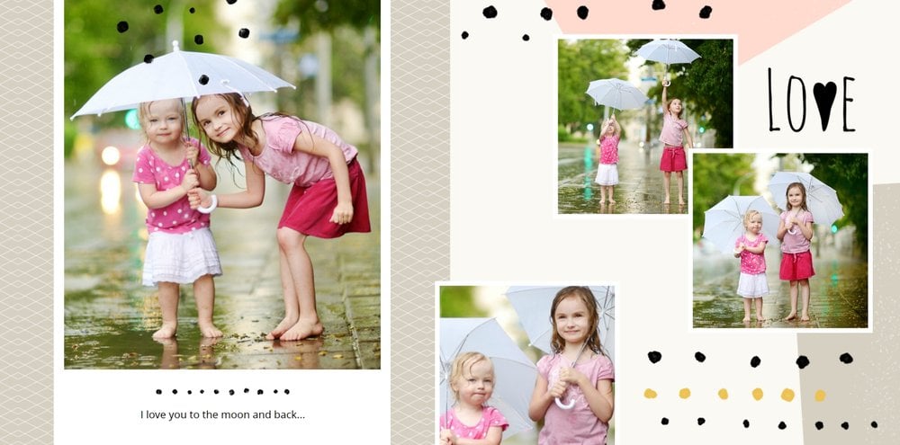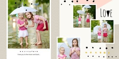 Miało być wesoło i rodzinnie, w szablonie Love postawiliśmy więc na ciepłe, pastelowe barwy, które przełamaliśmy ramkami i czcionkami w kolorze czarnym. Zaprojektowane przez nas strony są uniwersalne, aby można je było zmodyfikować pod swoje potrzeby i stworzyć jedyną w swoim rodzaju fotoopowieść lub fotoksiążkę na prezent.