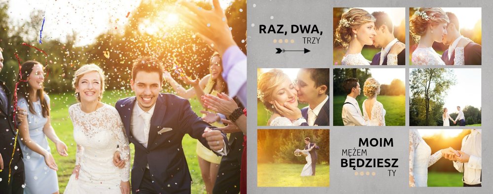 Fotoksiążka ślubna nie musi być nudna. Mąż i żona, to szablon, który został stworzony dla wszystkich Młodych Par podchodzących do ślubu w sposób oryginalny i luźny. Stonowane kolory szarości i beżu oraz modna grafika sprawią, że pamiątka ze ślubu stanie się wyjątkowa. Fotoksiążka z tym szablonem, to również idealny pomysł na prezent dla gości weselnych.