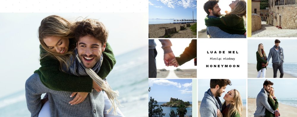 Miesiąc miodowy to szablon dzięki któremu zaprojektujesz przepiękną fotoksiążkę z Waszej podróży poślubnej. Wszystkie Wasze zdjęcia w jednym miejscu! Spraw, żeby ta wyjątkowa podróż miała wyjątkową oprawę. Uniwersalna grafika, miłosne sentencje i minimalistyczna kolorystyka pozwoli Ci cieszyć się Twoimi zdjęciami przez wiele, wiele lat!