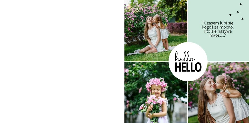 Oto propozycja dla miłośników koloru miętowego! W tym kolorze znajdziemy tu nie tylko tła, ale także ramki i dodatki. Miętę przełamaliśmy bielą dodatków i czernią czcionek. Cały szablon Miętowo mi finalnie prezentuje się przepięknie! Dodaj ulubione zdjęcia i zaprojektuj kolejną fotoksiążkę do swojej kolekcji! Szablon typu "everyday life", nadający się na wiele okazji.
