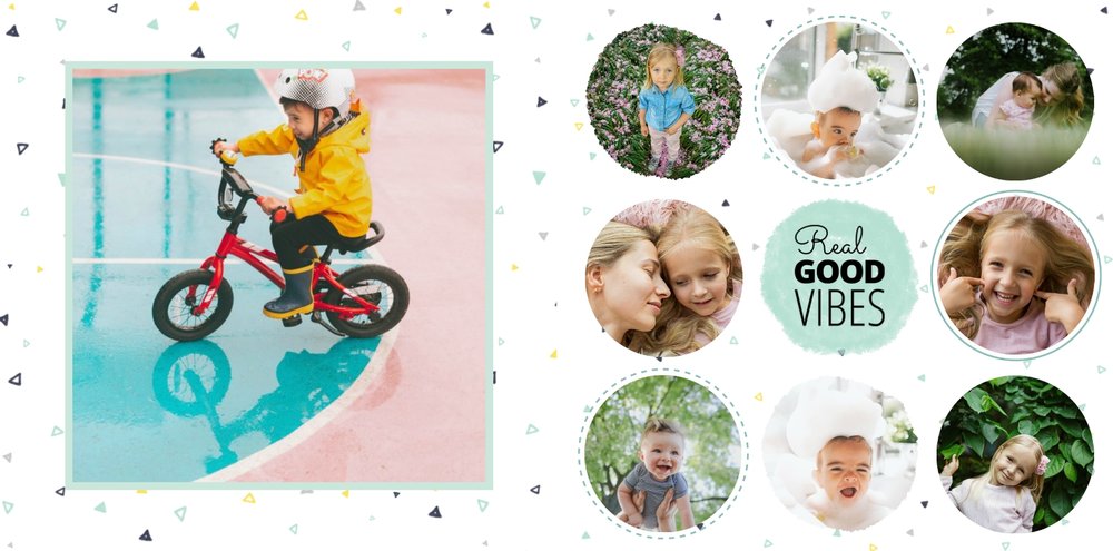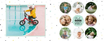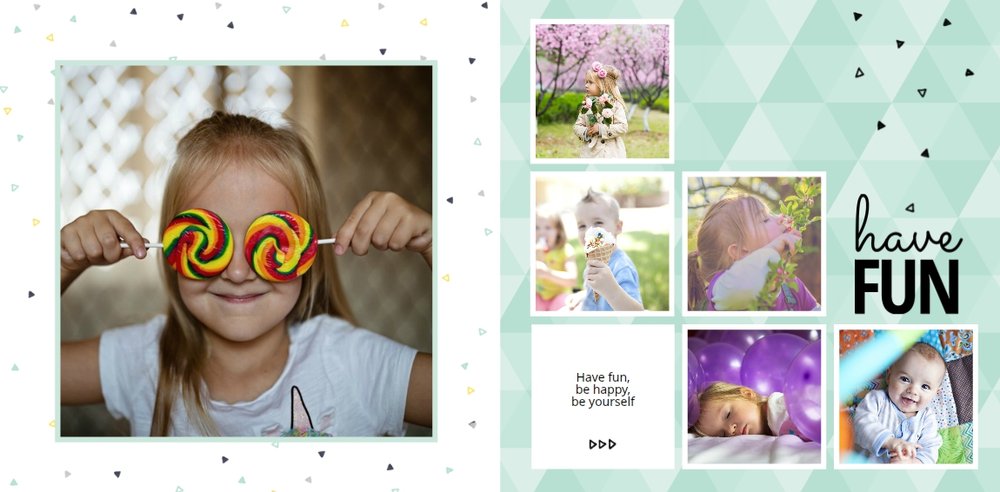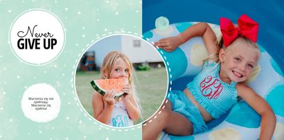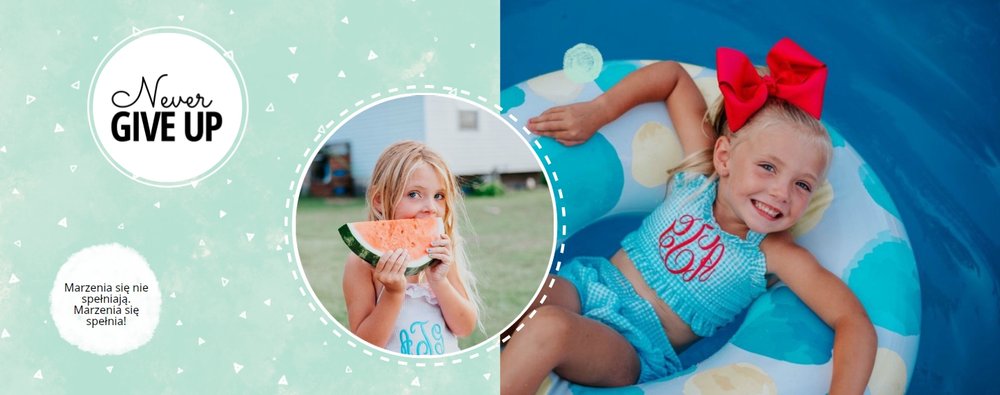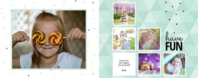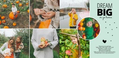 Oto propozycja dla miłośników koloru miętowego! W tym kolorze znajdziemy tu nie tylko tła, ale także ramki i dodatki. Miętę przełamaliśmy bielą dodatków i czernią czcionek. Cały szablon Miętowo mi finalnie prezentuje się przepięknie! Dodaj ulubione zdjęcia i zaprojektuj kolejną fotoksiążkę do swojej kolekcji! Szablon typu "everyday life", nadający się na wiele okazji.