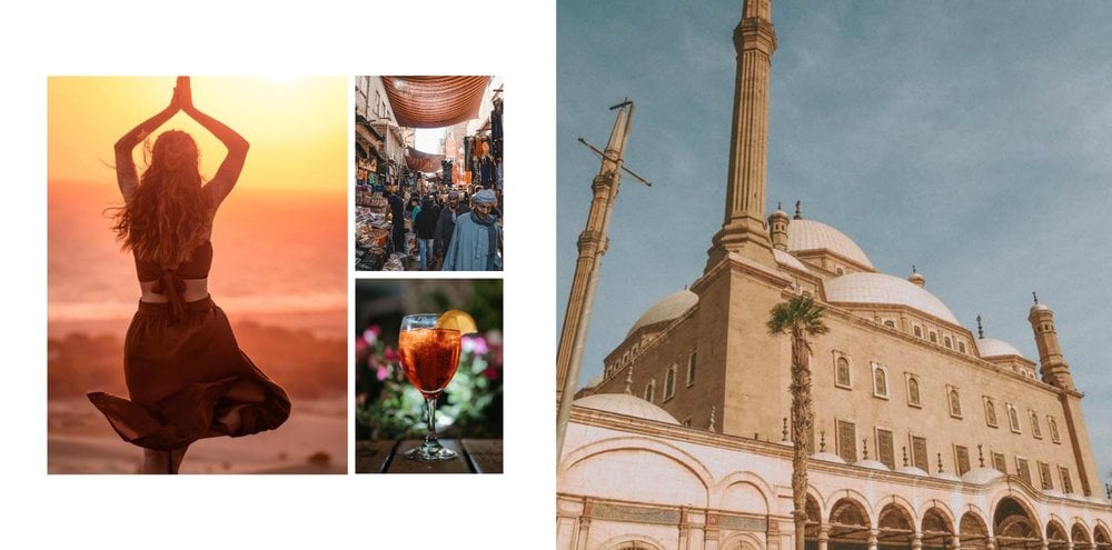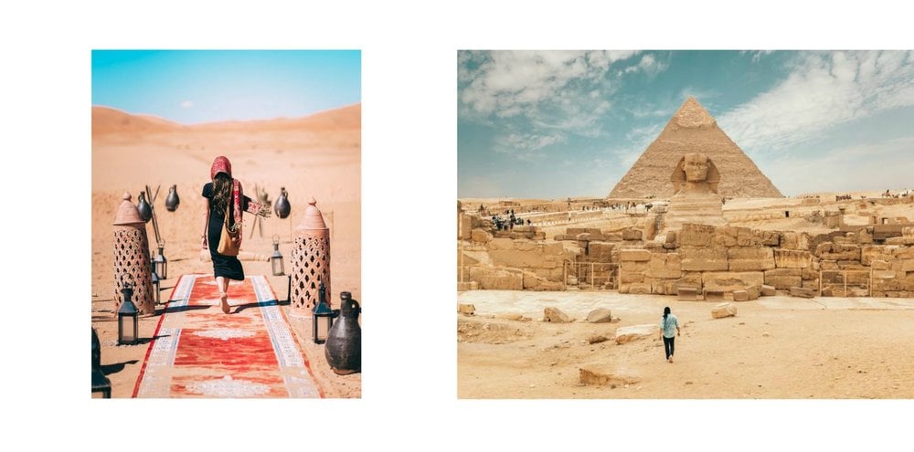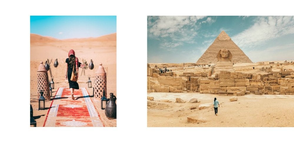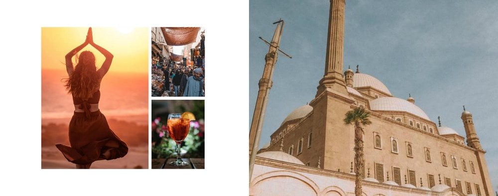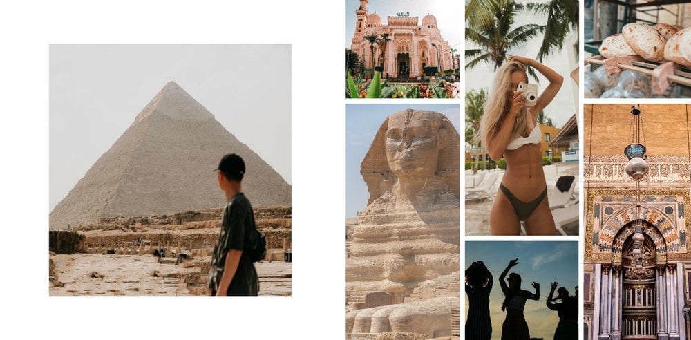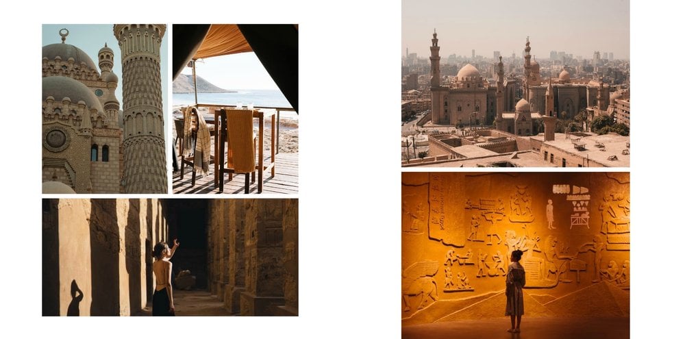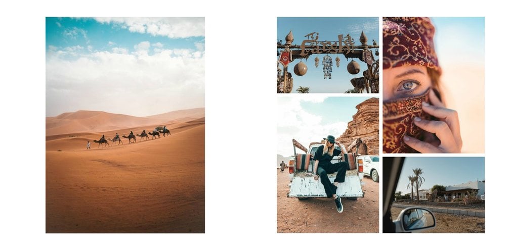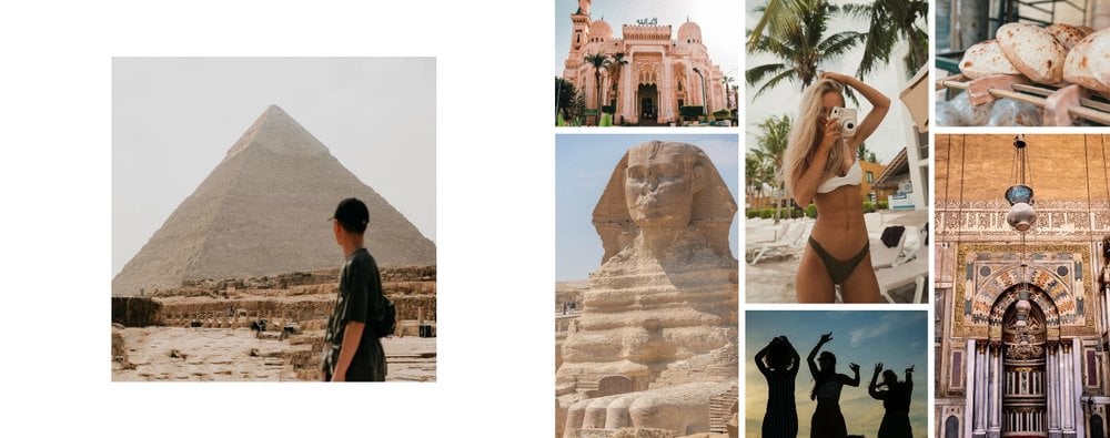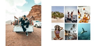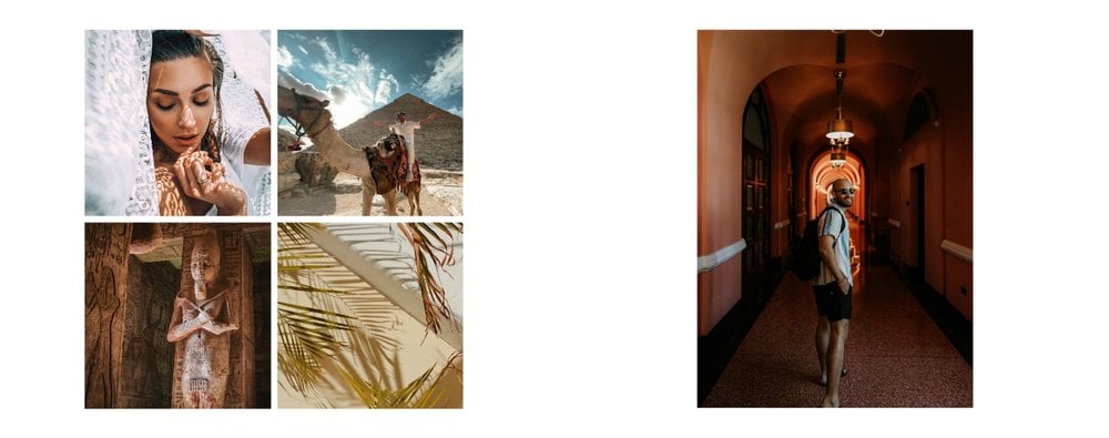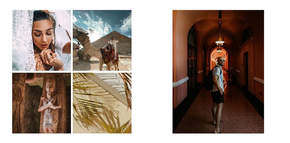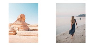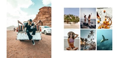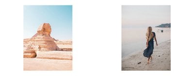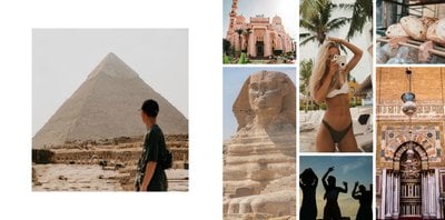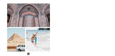 Z szablonem fotoksiążki "Minimalistyczne wakacje - Egipt" w szybki i łatwy sposób stworzysz idealną pamiątkę dla Twoich zdjęć z podróży do Egiptu. Większość stron zajmują komórki zdjęciowe dostosowane pod pionowe zdjęcia z telefonu. Każdy układ jest również przygotowany pod różną ilość zdjęć, dzięki czemu bardzo łatwo jest dopasować szablon pod zarówno kilkudniowy city break, jak i dłuższy wyjazd na urlop. Minimalistyczny wygląd oraz estetyczne układy zdjęciowe dodają całości elegancji oraz sprawiają, że szablon staje się jeszcze bardziej uniwersalny.