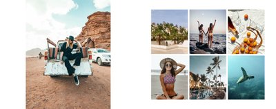 Z szablonem fotoksiążki "Minimalistyczne wakacje - Egipt" w szybki i łatwy sposób stworzysz idealną pamiątkę dla Twoich zdjęć z podróży do Egiptu. Większość stron zajmują komórki zdjęciowe dostosowane pod pionowe zdjęcia z telefonu. Każdy układ jest również przygotowany pod różną ilość zdjęć, dzięki czemu bardzo łatwo jest dopasować szablon pod zarówno kilkudniowy city break, jak i dłuższy wyjazd na urlop. Minimalistyczny wygląd oraz estetyczne układy zdjęciowe dodają całości elegancji oraz sprawiają, że szablon staje się jeszcze bardziej uniwersalny.