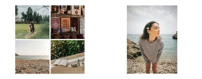 Z szablonem fotoksiążki "Minimalistyczne wakacje - Turcja" w szybki i łatwy sposób stworzysz idealną pamiątkę dla Twoich zdjęć z podróży do Turcji. Większość stron zajmują komórki zdjęciowe dostosowane pod pionowe zdjęcia z telefonu. Każdy układ jest również przygotowany pod różną ilość zdjęć, dzięki czemu bardzo łatwo jest dopasować szablon pod zarówno kilkudniowy city break, jak i dłuższy wyjazd na urlop. Minimalistyczny wygląd oraz estetyczne układy zdjęciowe dodają całości elegancji oraz sprawiają, że szablon staje się jeszcze bardziej uniwersalny.