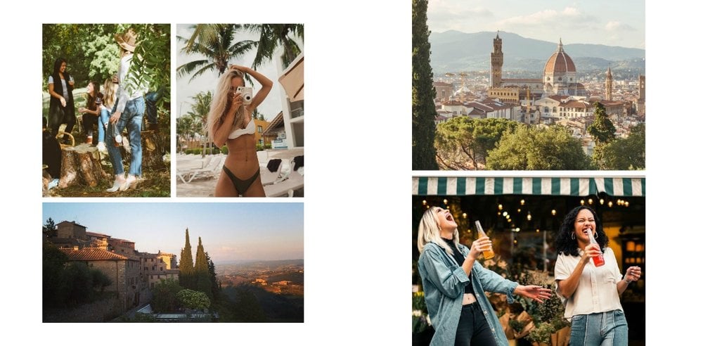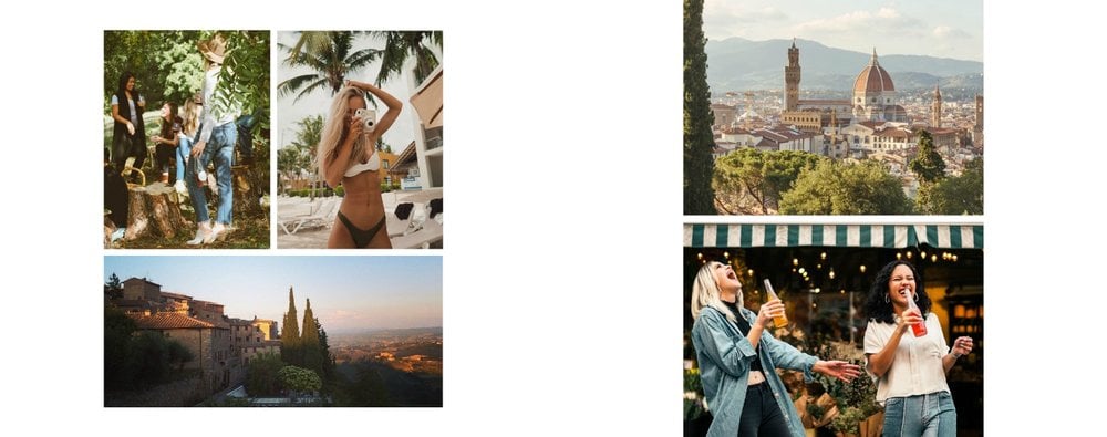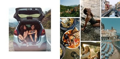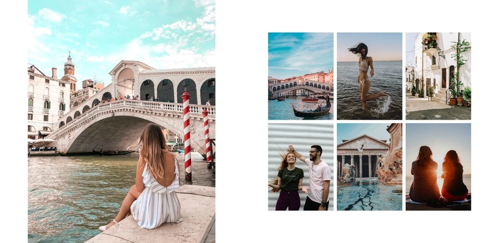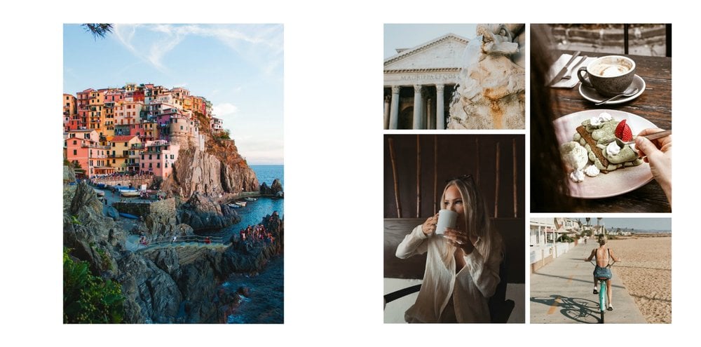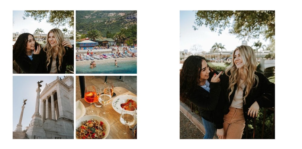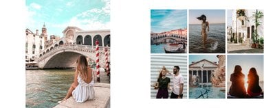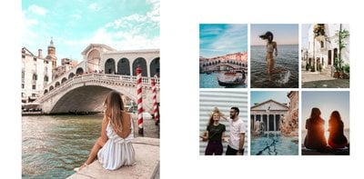 Z szablonem fotoksiążki "Minimalistyczne wakacje - Włochy" w szybki i łatwy sposób stworzysz idealną pamiątkę dla Twoich zdjęć z podróży do Włoch. Większość stron zajmują komórki zdjęciowe dostosowane pod pionowe zdjęcia z telefonu. Każdy układ jest również przygotowany pod różną ilość zdjęć, dzięki czemu bardzo łatwo jest dopasować szablon pod zarówno kilkudniowy city break, jak i dłuższy wyjazd na urlop. Minimalistyczny wygląd oraz estetyczne układy zdjęciowe dodają całości elegancji oraz sprawiają, że szablon staje się jeszcze bardziej uniwersalny.