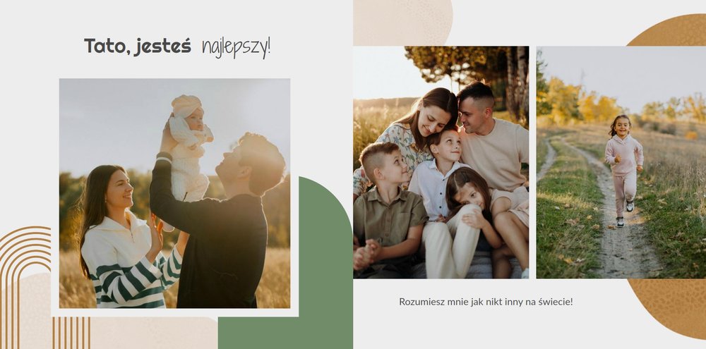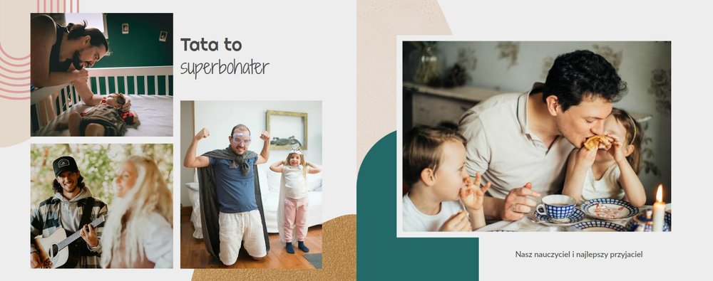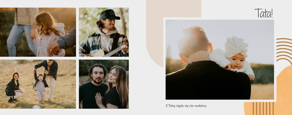 Stwórz idealny prezent na Dzień Taty z fotoksiążką “Minimalistyczny album na Dzień Taty”. Z tym szablonem w prosty sposób zaprojektujesz piękną pamiątkę na lata.