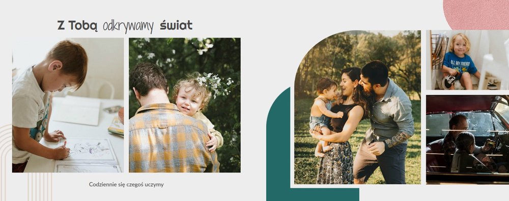Szablon fotoksiążki został zaprojektowany w myśl minimalistycznego stylu boho. Przyjemne kolory lata, podkreślą radość bijącą ze wspólnych rodzinnych fotografii. Prosty i przyjemny układ zdjęć sprawią, że projektowanie będzie jeszcze łatwiejsze niż dotychczas. Wystarczy, że do projektu fotoksiążki dodasz rodzinne zdjęcia i... to tyle! Twoja fotoksiążka jest gotowa.