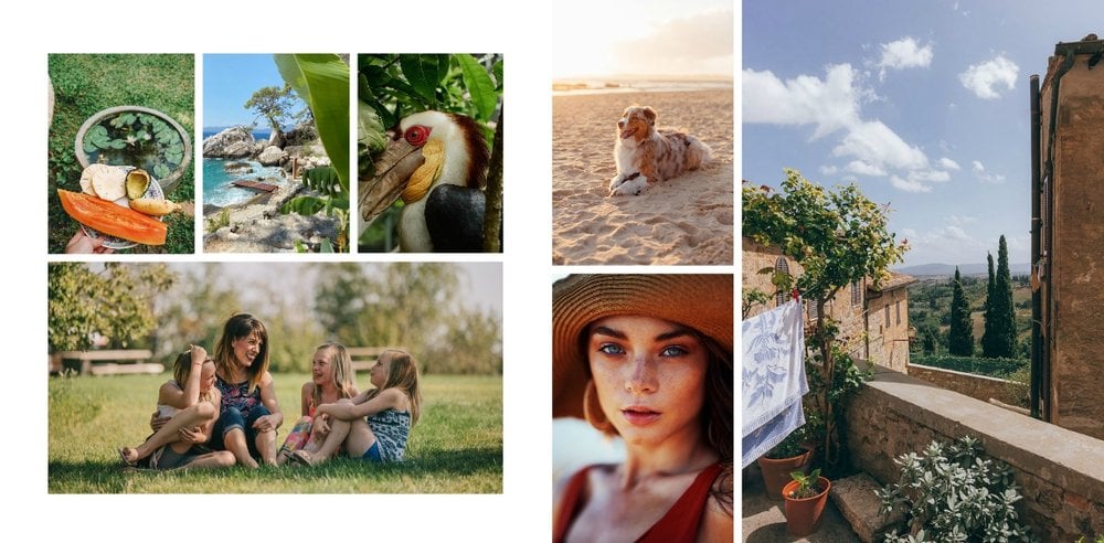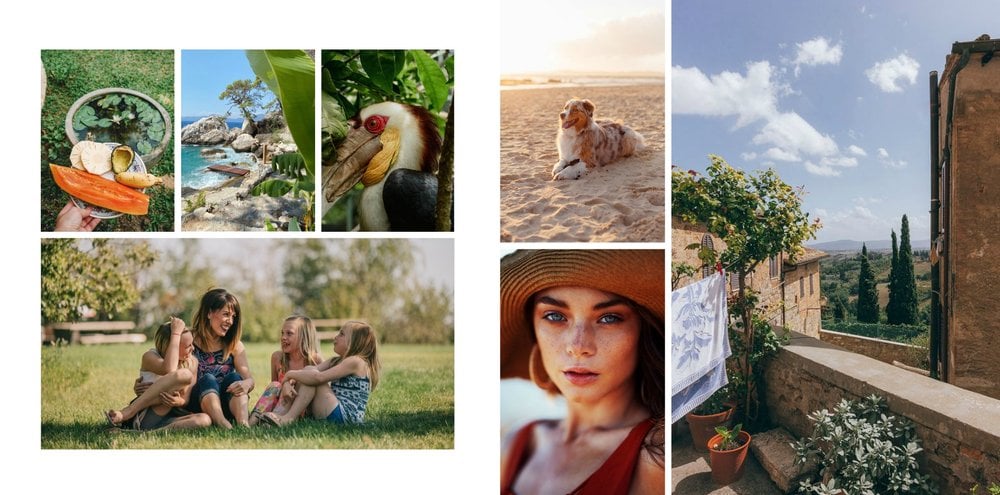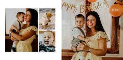 Z szablonem fotoksiążki "Minimalistyczny album na zdjęcia" w szybki i łatwy sposób stworzysz idealną pamiątkę dla każdego rodzaju zdjęć. Większość stron zajmują komórki zdjęciowe dostosowane pod pionowe zdjęcia z telefonu. Każdy układ jest również przygotowany pod różną ilość zdjęć, dzięki czemu bardzo łatwo jest dopasować szablon pod zarówno małą, rodzinną sesję zdjęciową, jak i wiele zdjęć z całego roku. Minimalistyczny wygląd oraz estetyczne układy zdjęciowe dodają całości elegancji oraz sprawiają, że szablon staje się jeszcze bardziej uniwersalny.