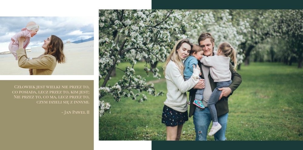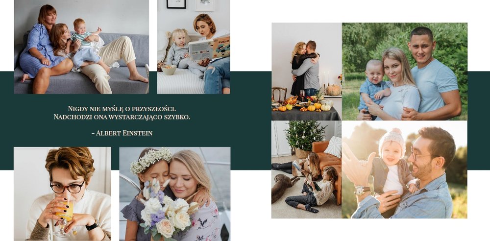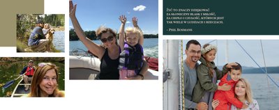 Wystarczy wypełnić każdą stronę zdjęciami, które posiadasz - swoimi, jubilata, Waszych bliskich. Nie musisz planować każdej rozkładówki, prostota projektu sprawia, że wszystko będzie ze sobą współgrało i połączy się w harmonijną całość. W szablonie znajdziesz miejsce na najnowsze ujęcia, ale i skany zdjęć sprzed lat. Świetnie sprawdzą się codzienne fotki z telefonu, jak i te z rodzinnych spotkań i wyjątkowych okoliczności.