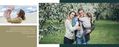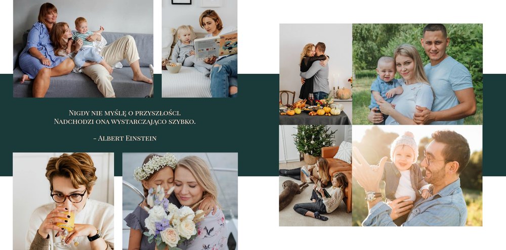 Wystarczy wypełnić każdą stronę zdjęciami, które posiadasz - swoimi, jubilata, Waszych bliskich. Nie musisz planować każdej rozkładówki, prostota projektu sprawia, że wszystko będzie ze sobą współgrało i połączy się w harmonijną całość. W szablonie znajdziesz miejsce na najnowsze ujęcia, ale i skany zdjęć sprzed lat. Świetnie sprawdzą się codzienne fotki z telefonu, jak i te z rodzinnych spotkań i wyjątkowych okoliczności.