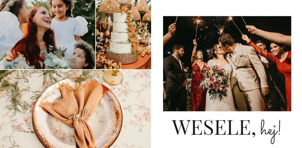 Fotoksiążka z szablonem "Minimalistyczny ślub w stylu boho" to idealna propozycja dla każdej młodej pary, która urządzała ślub w ponadczasowym stylu boho.