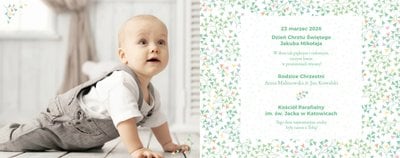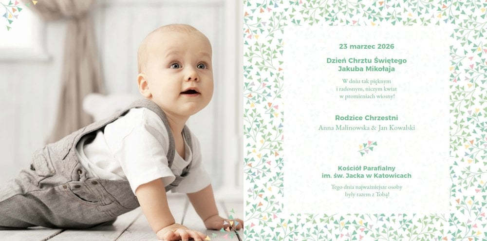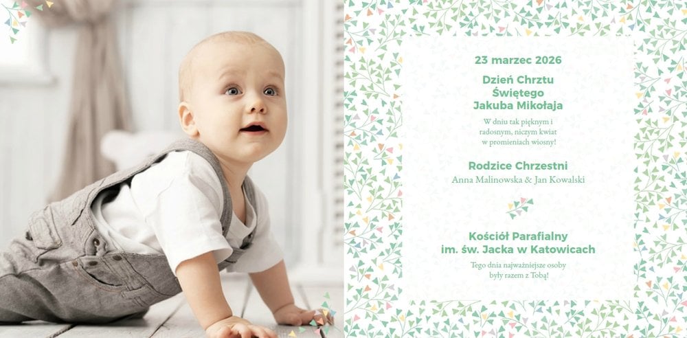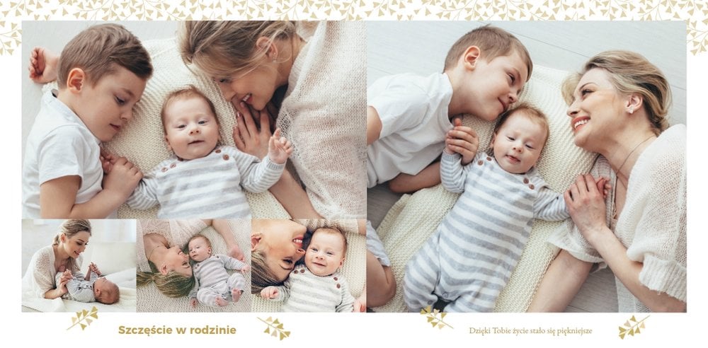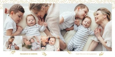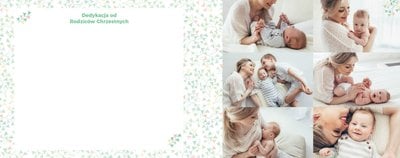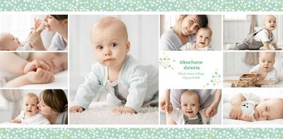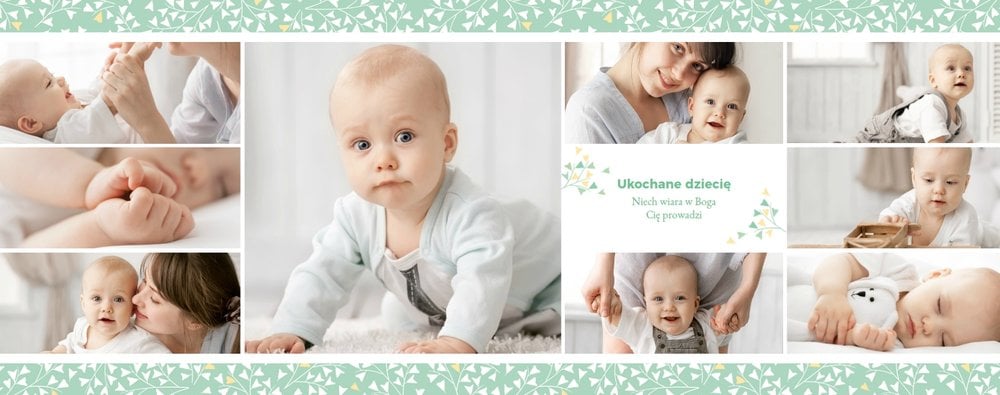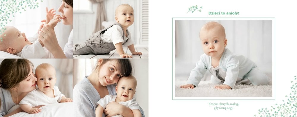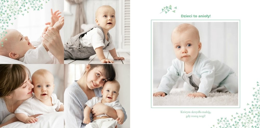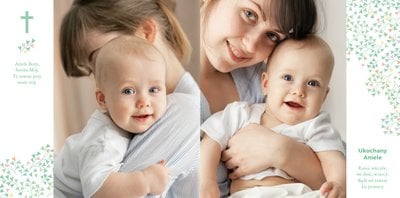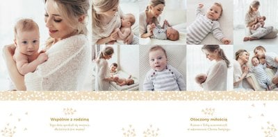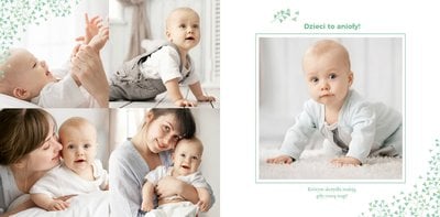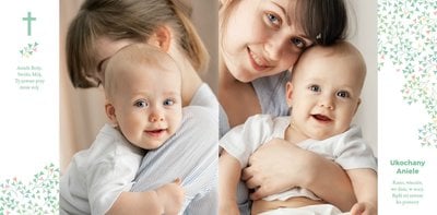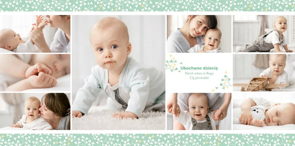 Z szablonem Mój pierwszy sakrament przygotujesz piękną pamiątkę z Chrztu Świętego Twojego dziecka lub stworzysz oryginalny prezent dla Chrześniaka. Przejrzyj foldery i przygotuj zdjęcia, z którymi zaprojektujesz wyjątkową fotoksiążkę. Z całą pewnością będzie ona pamiątką na wiele, wiele lat. Wnętrze szablonu zapewnia miejsca na piękne zdjęcia z sakramentu przyjęcia chrztu oraz wzruszające cytaty. Wszystko to sprawi, że fotoksiążka będzie wzruszać obdarowanych. Szablon Mój pierwszy sakrament to minimalistyczny szablon, w którym znajdziesz delikatne elementy graficzne oraz mnóstwo miejsca na fotografie z tego wielkiego dnia.