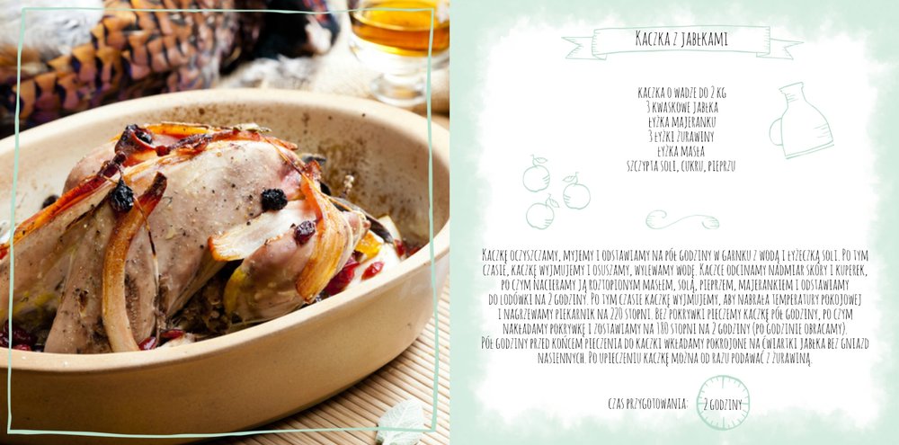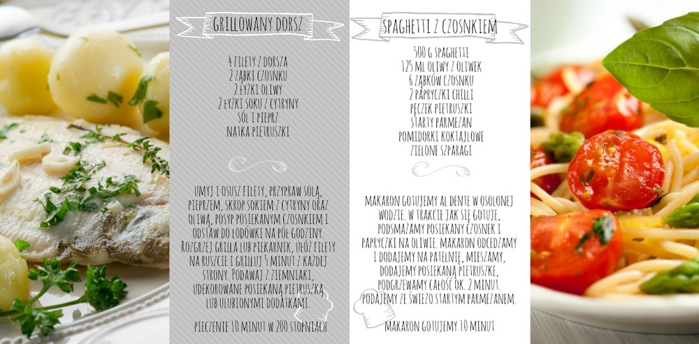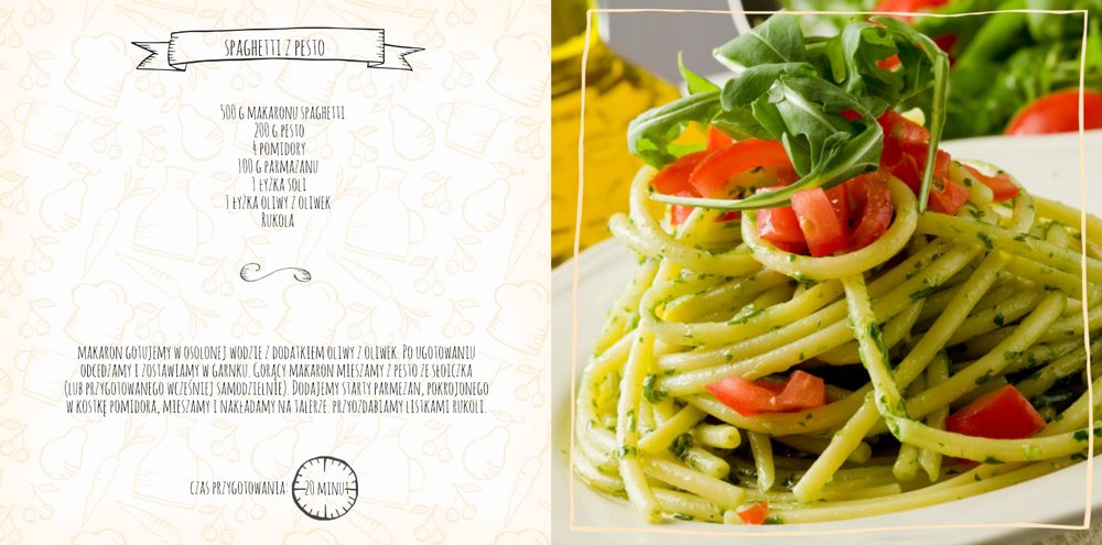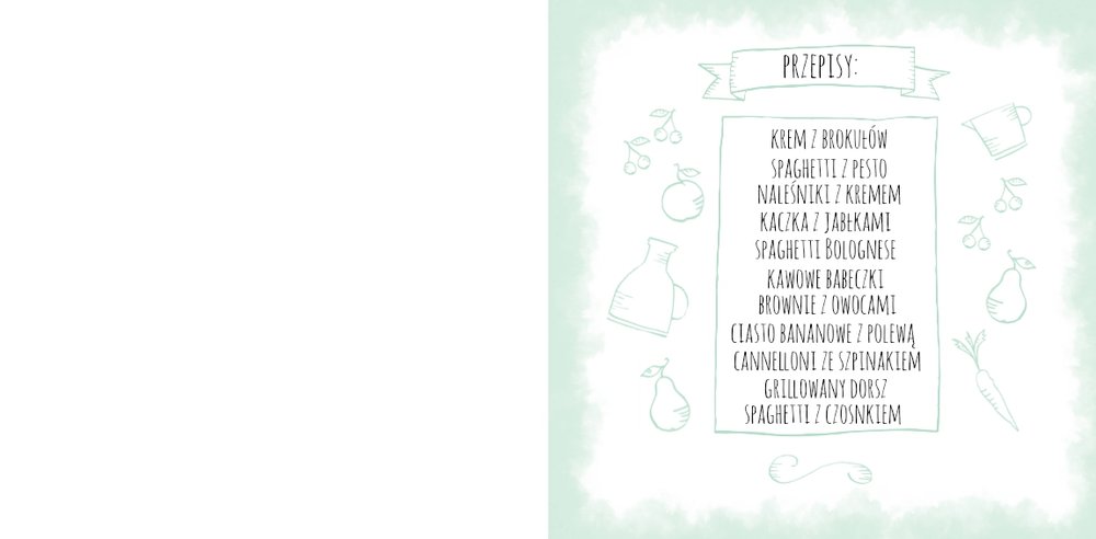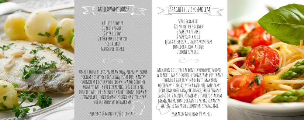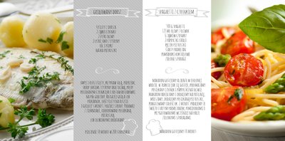 Szablon "Moje przepisy" to propozycja dla osób, które lubią gotować i którym marzy się własna książka kucharska. Dodając zdjęcia ulubionych potraw , składniki, sposób przyrządzenia, potrzebny na zrobienie dania czas oraz wypełniając spis treści, stworzymy własną książką kucharską, która będzie wyjątkową pamiątką rodzinną. Każdy miłośnik gotowania także doceni taki oryginalny prezent. W szablonie dominuje biel, szarość, zieleń i jasny pomarańcz.