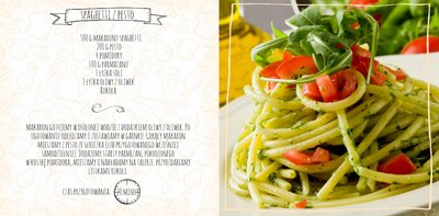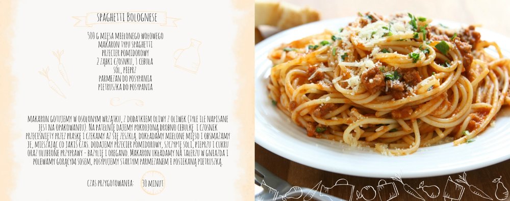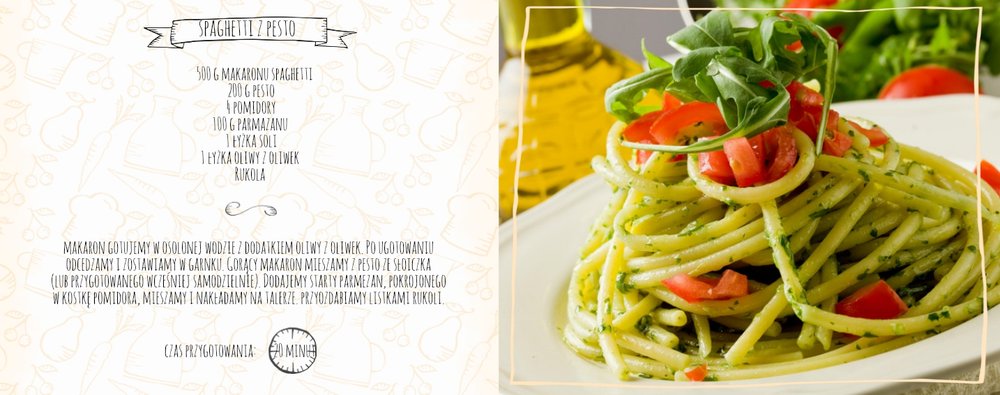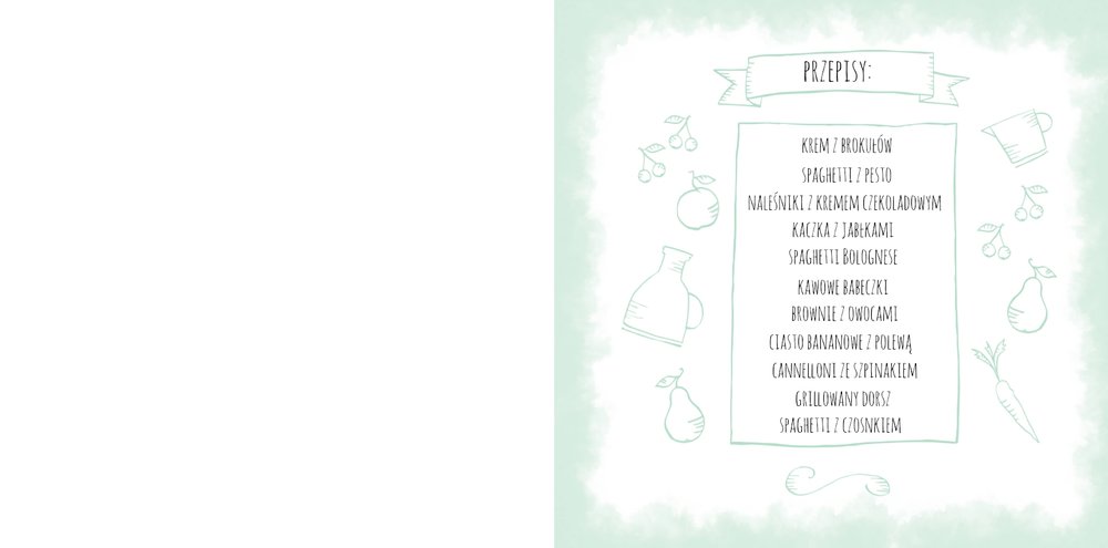 Szablon "Moje przepisy" to propozycja dla osób, które lubią gotować i którym marzy się własna książka kucharska. Dodając zdjęcia ulubionych potraw , składniki, sposób przyrządzenia, potrzebny na zrobienie dania czas oraz wypełniając spis treści, stworzymy własną książką kucharską, która będzie wyjątkową pamiątką rodzinną. Każdy miłośnik gotowania także doceni taki oryginalny prezent. W szablonie dominuje biel, szarość, zieleń i jasny pomarańcz.