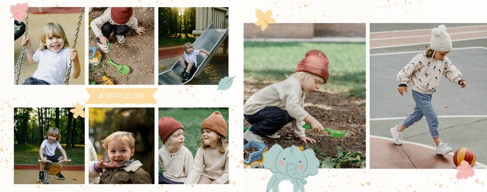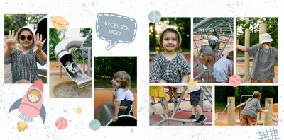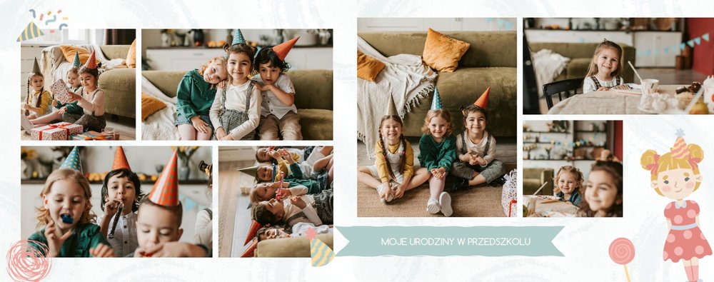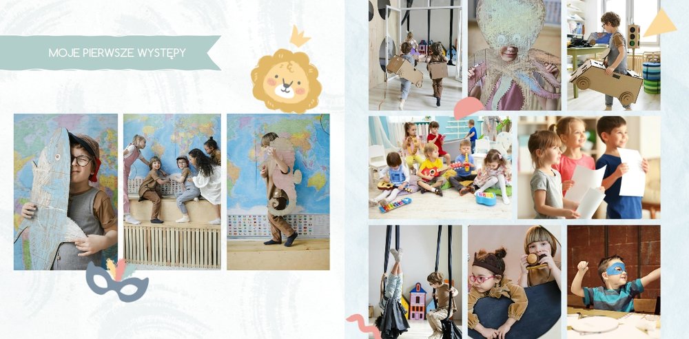 Z szablonem fotoksiążki “Moje wesołe przedszkole” sprawisz sobie i swojemu dziecku cudowną pamiątkę na lata. Wypełniony kolorowymi stronami oraz uroczymi dodatkami, zachęci niejedno dziecko do tworzenia, a następnie częstego przeglądania go razem z Tobą. Szablon został zaprojektowany z myślą o chronologicznym ułożeniu wydarzeń z przedszkola - od pasowania na przedszkolaka do pożegnania przedszkola. Kolorowe dodatki podkreślą radość dziecka na zdjęciach, a wybór pomiędzy wersją dziewczęcą a chłopięcą dodatku jeszcze bardziej spersonalizuje fotoksiążkę.
