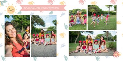 Z szablonem fotoksiążki “Moje wesołe przedszkole” sprawisz sobie i swojemu dziecku cudowną pamiątkę na lata. Wypełniony kolorowymi stronami oraz uroczymi dodatkami, zachęci niejedno dziecko do tworzenia, a następnie częstego przeglądania go razem z Tobą. Szablon został zaprojektowany z myślą o chronologicznym ułożeniu wydarzeń z przedszkola - od pasowania na przedszkolaka do pożegnania przedszkola. Kolorowe dodatki podkreślą radość dziecka na zdjęciach, a wybór pomiędzy wersją dziewczęcą a chłopięcą dodatku jeszcze bardziej spersonalizuje fotoksiążkę.