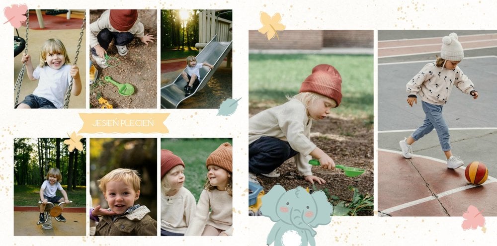 Z szablonem fotoksiążki “Moje wesołe przedszkole” sprawisz sobie i swojemu dziecku cudowną pamiątkę na lata. Wypełniony kolorowymi stronami oraz uroczymi dodatkami, zachęci niejedno dziecko do tworzenia, a następnie częstego przeglądania go razem z Tobą. Szablon został zaprojektowany z myślą o chronologicznym ułożeniu wydarzeń z przedszkola - od pasowania na przedszkolaka do pożegnania przedszkola. Kolorowe dodatki podkreślą radość dziecka na zdjęciach, a wybór pomiędzy wersją dziewczęcą a chłopięcą dodatku jeszcze bardziej spersonalizuje fotoksiążkę.