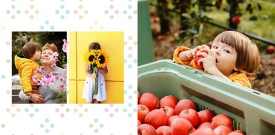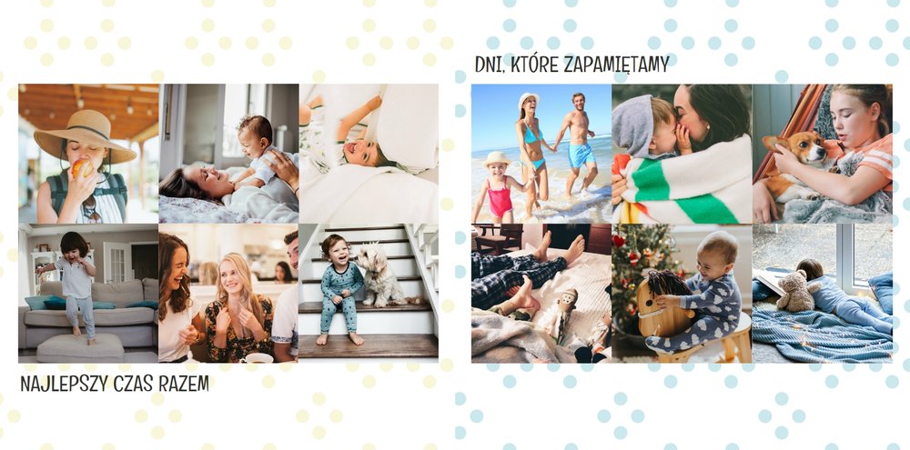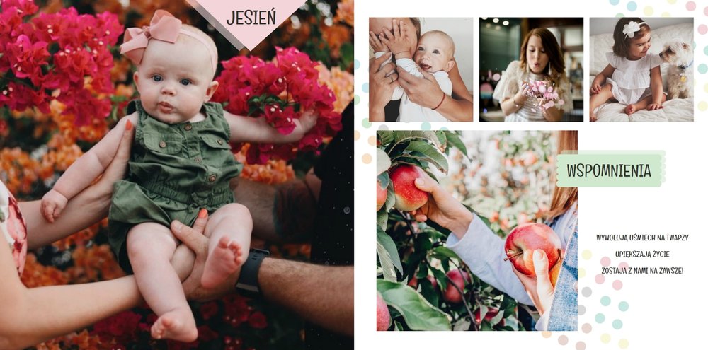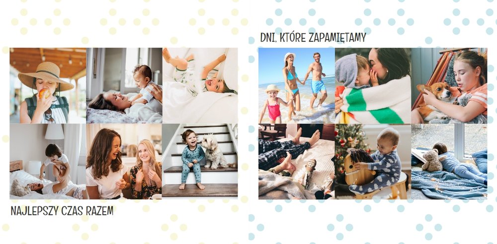 Jak mówi znane powiedzenie: "najpiękniejszych chwil nie zaplanujesz, one przyjdą same". I aby te piękne chwile zostały z nami na dłużej, warto je wydrukować w postaci fotoksiążki zaprojektowanej przy użyciu uroczego, pastelowego szablonu: momenty warte zapamiętania. Uniwersalność szablonu Momenty warte zapamiętania sprawia, że możemy stworzyć na jego podstawie dowolną tematycznie książkę pełną najcenniejszych wspomnień. Szablon typu "everyday life", nadający się na wiele okazji. Strony możesz dowolnie modyfikować, aby stworzyć spersonalizowaną fotoksiążkę.