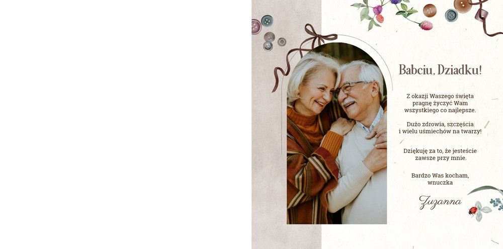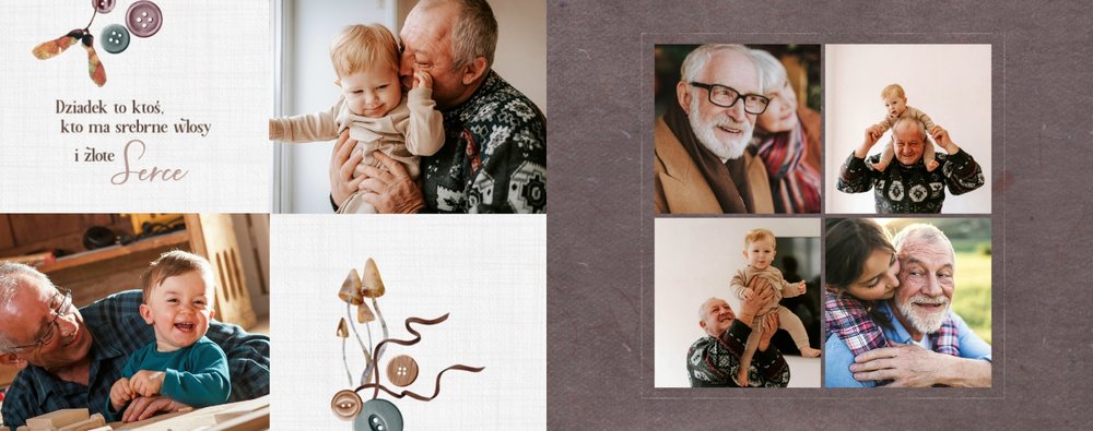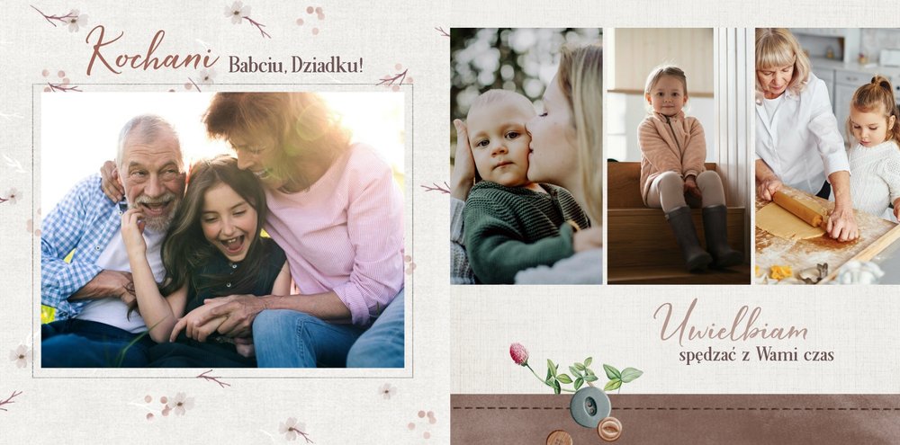 Dzień Babci i Dziadka to idealna okazja, aby razem z Twoim dzieckiem stworzyć wyjątkowy prezent, podarowany prosto od serca. Sposobem na wyrażenie swojej wdzięczności dla najbliższych jest podarowanie im najcenniejszych wspomnień zamkniętych w szablonie fotoksiążki "Na Dzień Babci i Dziadka".