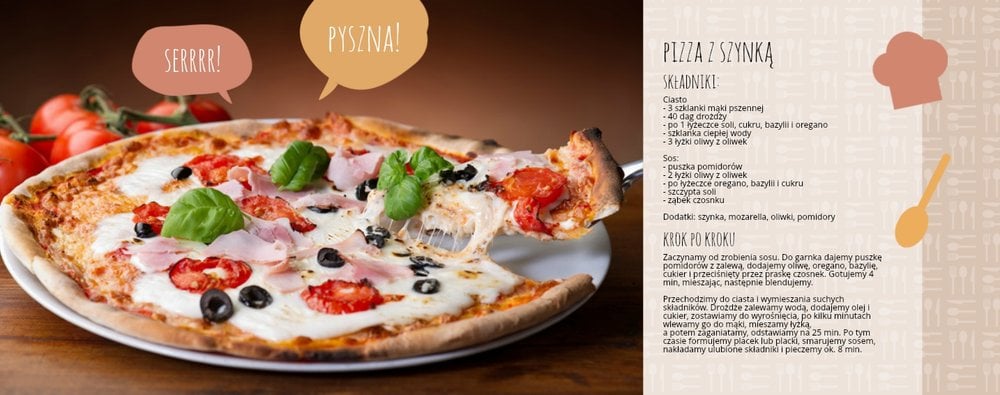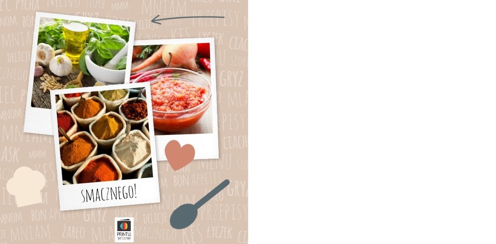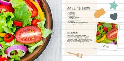 Każdy ma swoje ulubione przepisy, które skrzętnie notuje i zbiera do szuflady. Najlepsze przepisy to propozycja szablonu dla osób, którym marzy się własna książka kucharska czy przepiśnik. Fotoksiążkę rozpoczyna spis treści, a kolejno na każdej rozkładówce mamy miejsca na zdjęcia potraw oraz przepisy, które pięknie prezentują się na kolorowych stronach. Uzupełniając projekt, wydrukujemy swoje najlepsze przepisy. Jakie wybierzemy to tylko kwestia smaku.