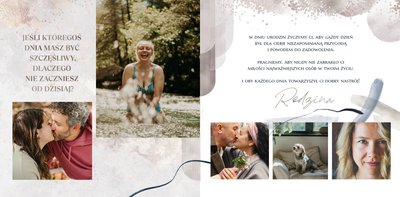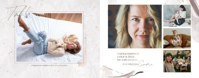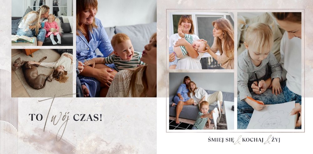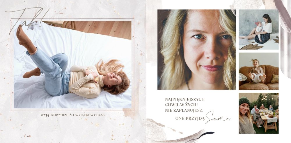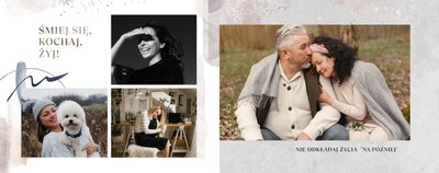 Jeśli pragniesz podarować prezent, który nie będzie banalny, a do tego pozwoli Ci przekazać szczere życzenia w trwałej oprawie to fotoksiążka sprawdzi się w tej roli znakomicie. Szablon "Najszczersze życzenia" to magiczny motyw, który skrywa w sobie mnóstwo ciepłych słów, natomiast piękne metaliczne grafiki przyozdobią zdjęcia zachowane na stronach projektu. Uniwersalna kolorystyka i design sprawiają, że szablon ten sprawdzi się jako prezent dla osoby w każdym wieku, zarówno dla kobiety, jak i mężczyzny.
