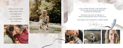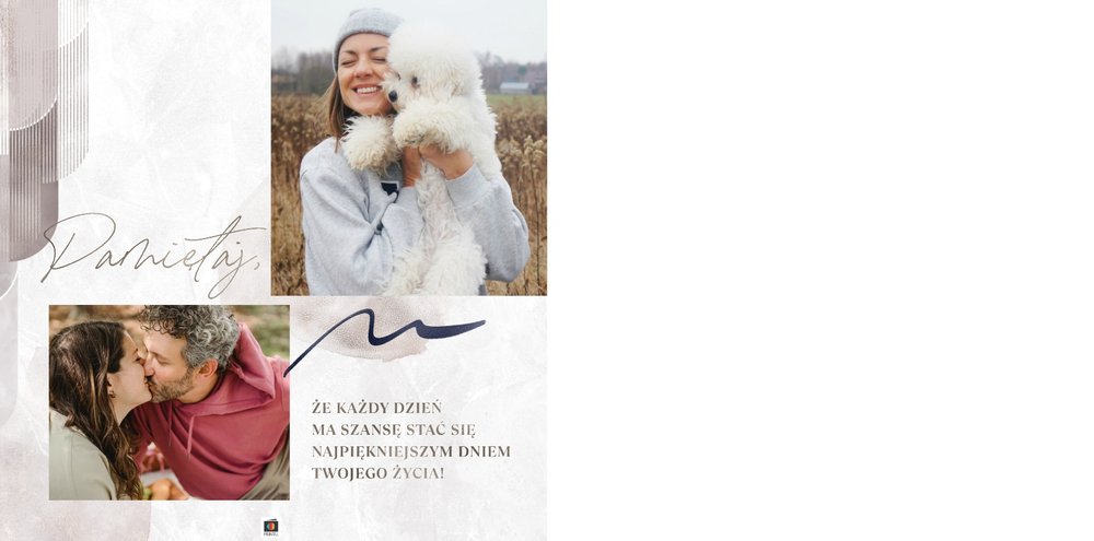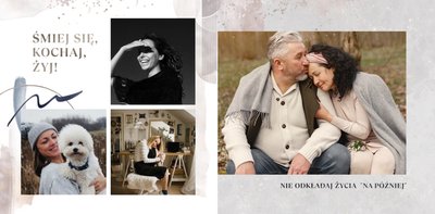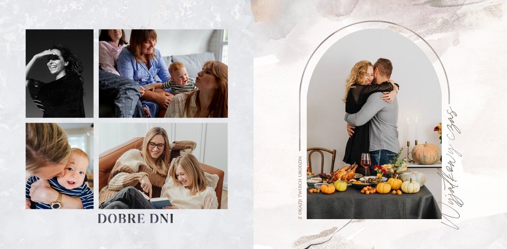 Jeśli pragniesz podarować prezent, który nie będzie banalny, a do tego pozwoli Ci przekazać szczere życzenia w trwałej oprawie to fotoksiążka sprawdzi się w tej roli znakomicie. Szablon "Najszczersze życzenia" to magiczny motyw, który skrywa w sobie mnóstwo ciepłych słów, natomiast piękne metaliczne grafiki przyozdobią zdjęcia zachowane na stronach projektu. Uniwersalna kolorystyka i design sprawiają, że szablon ten sprawdzi się jako prezent dla osoby w każdym wieku, zarówno dla kobiety, jak i mężczyzny.