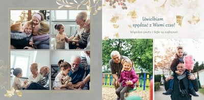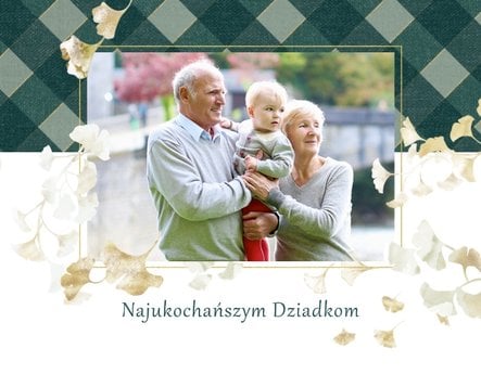 Szablon "Najukochańszym Dziadkom" to oryginalna kompozycja - połączenie ciemnej i eleganckiej kratki oraz wielobarwnego miłorzębu. Całość szablonu jest bardzo gustowna, co z całą pewnością przypadnie do gustu kochanym Dziadkom i idealnie wpasuje się w najzwyklejsze zdjęcia, również te z Twojego telefonu.
