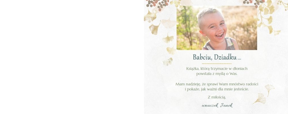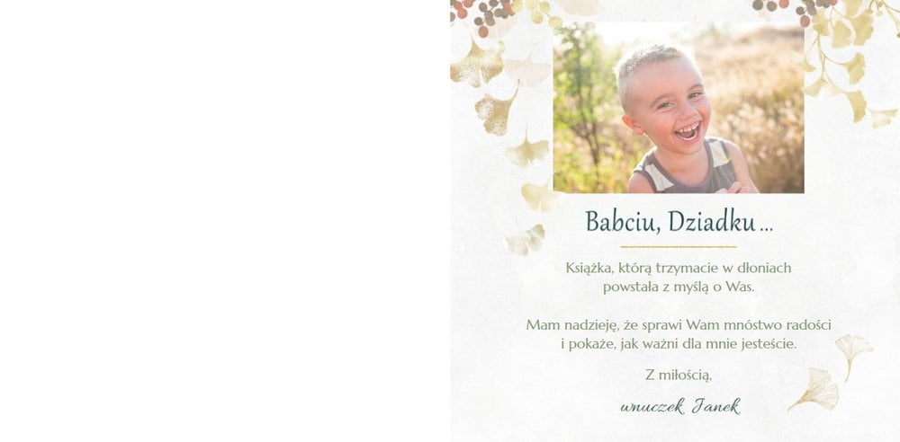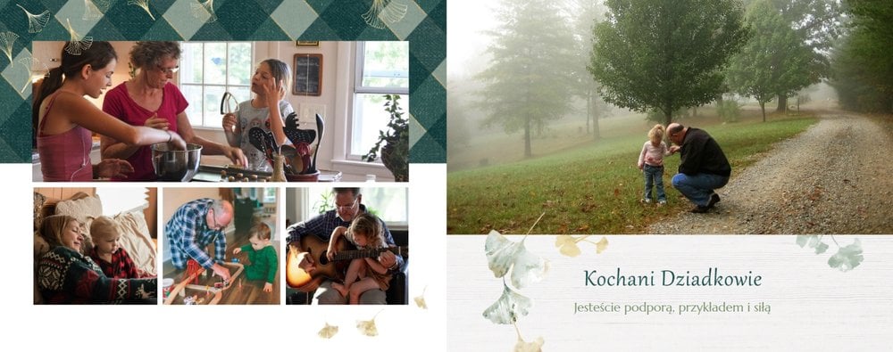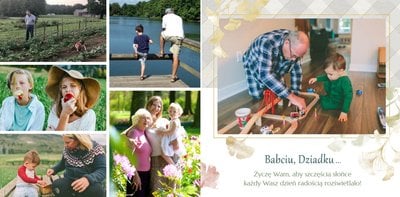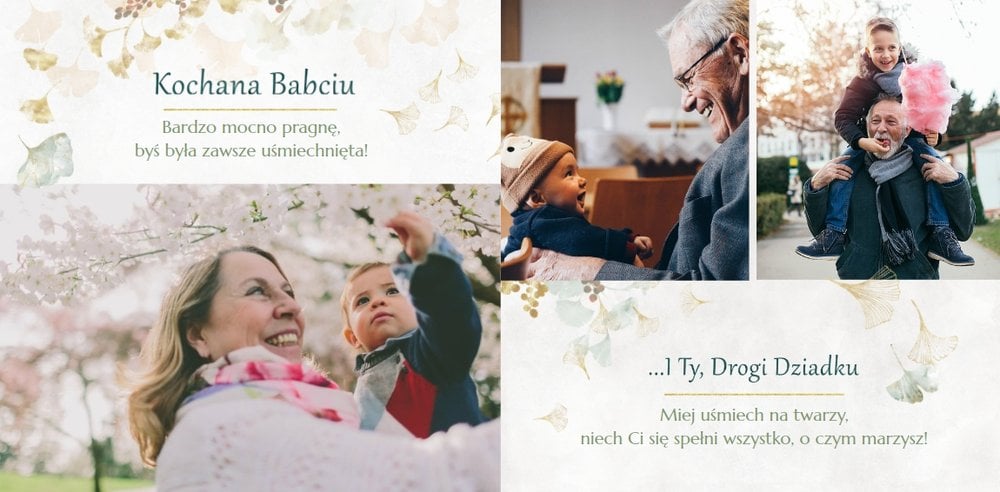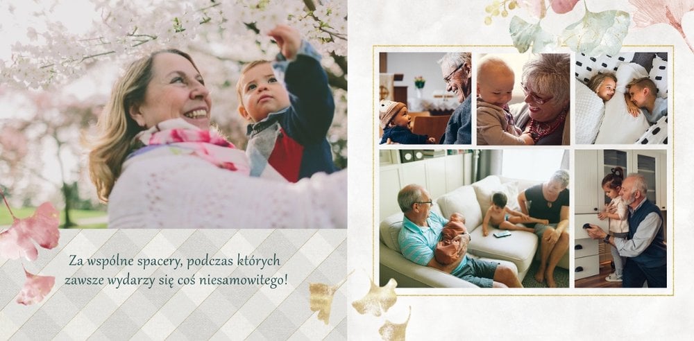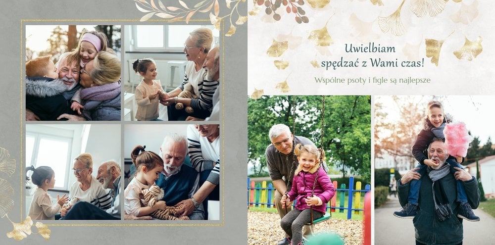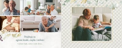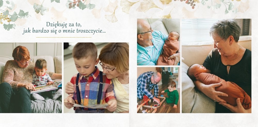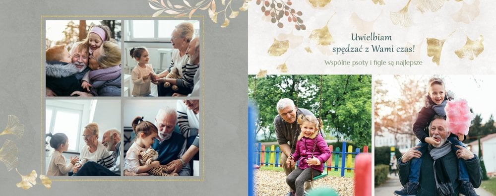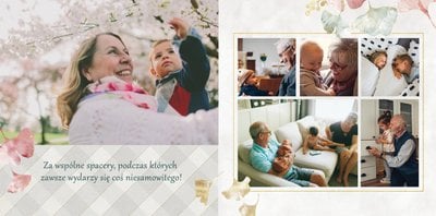 Dzień Babci i Dziadka to okazja na podarowanie prezentu prosto od serca kochanym Dziadkom! Sposobem na wyrażenie pięknych emocji jest fotoksiążka z szablonem "Najukochańszym Dziadkom". Wewnątrz fotoksiążki możesz umieścić przeróżne zdjęcia - zarówno te z dziadkami, jak i te w rodzinnym gronie.