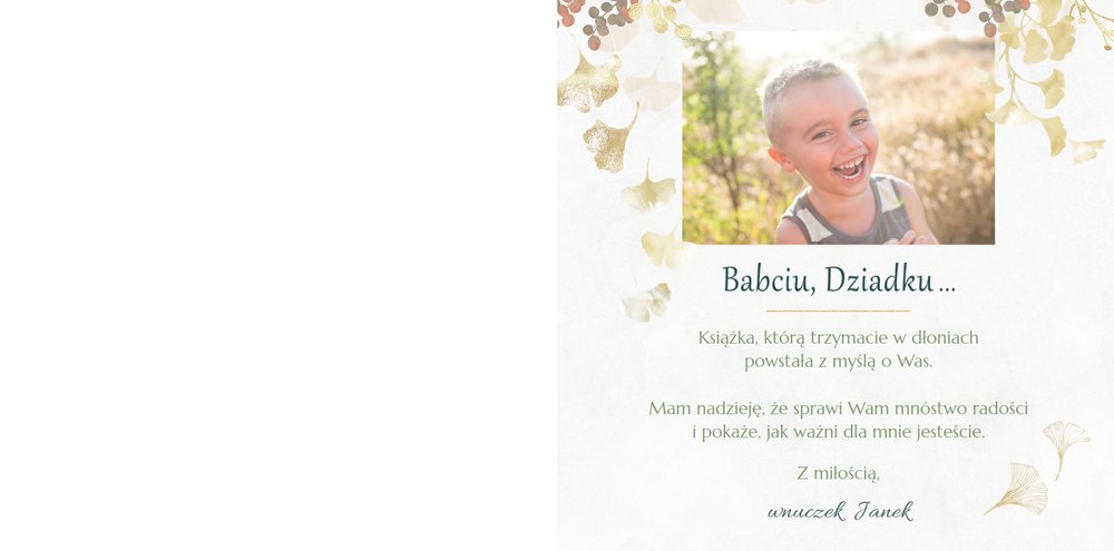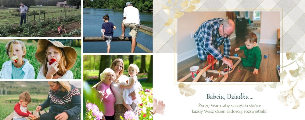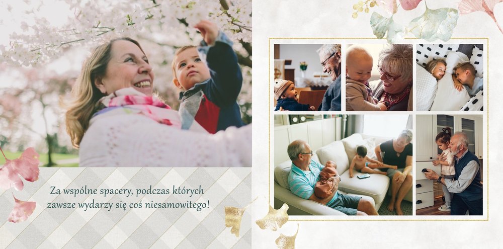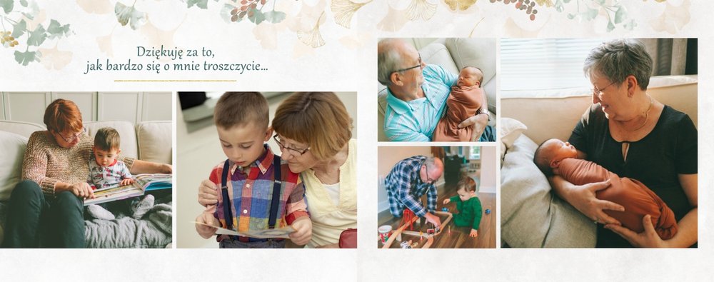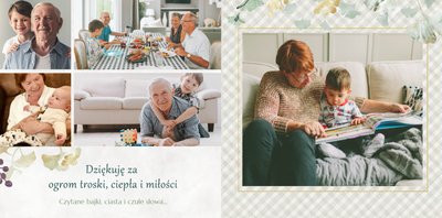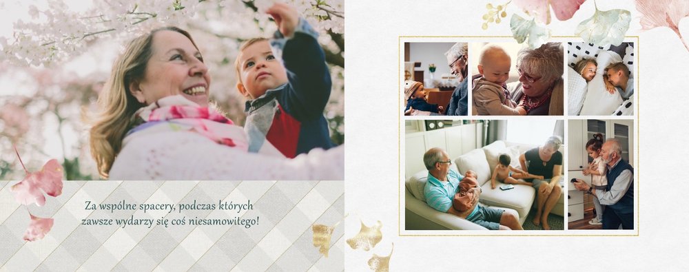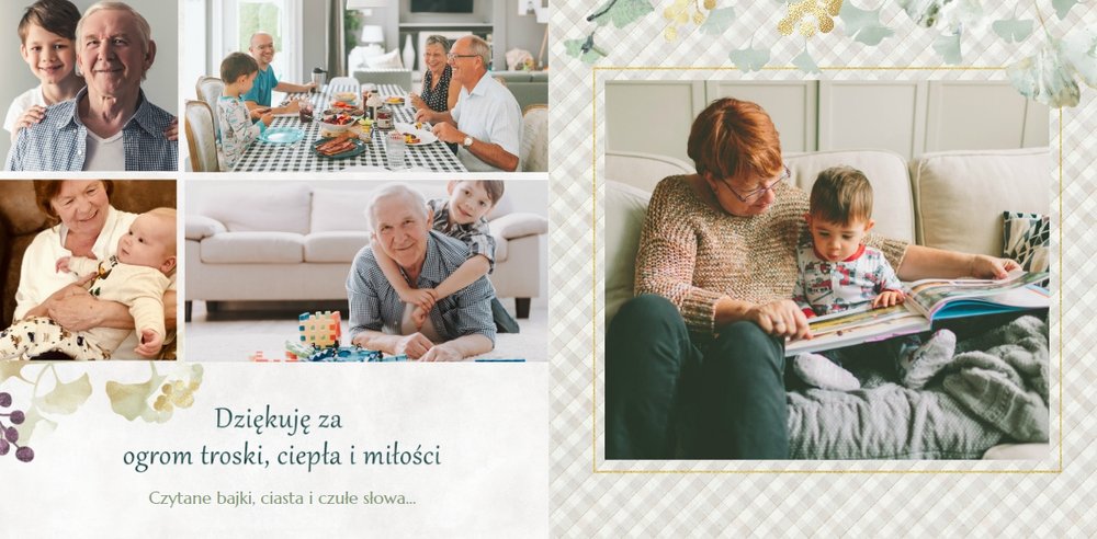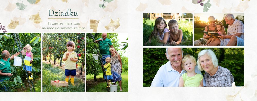 Dzień Babci i Dziadka to okazja na podarowanie prezentu prosto od serca kochanym Dziadkom! Sposobem na wyrażenie pięknych emocji jest fotoksiążka z szablonem "Najukochańszym Dziadkom". Wewnątrz fotoksiążki możesz umieścić przeróżne zdjęcia - zarówno te z dziadkami, jak i te w rodzinnym gronie.