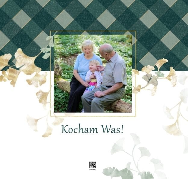 Szablon "Najukochańszym Dziadkom" to oryginalna kompozycja - połączenie ciemnej i eleganckiej kratki oraz wielobarwnego miłorzębu. Całość szablonu jest bardzo gustowna, co z całą pewnością przypadnie do gustu kochanym Dziadkom i idealnie wpasuje się w najzwyklejsze zdjęcia, również te z Twojego telefonu.