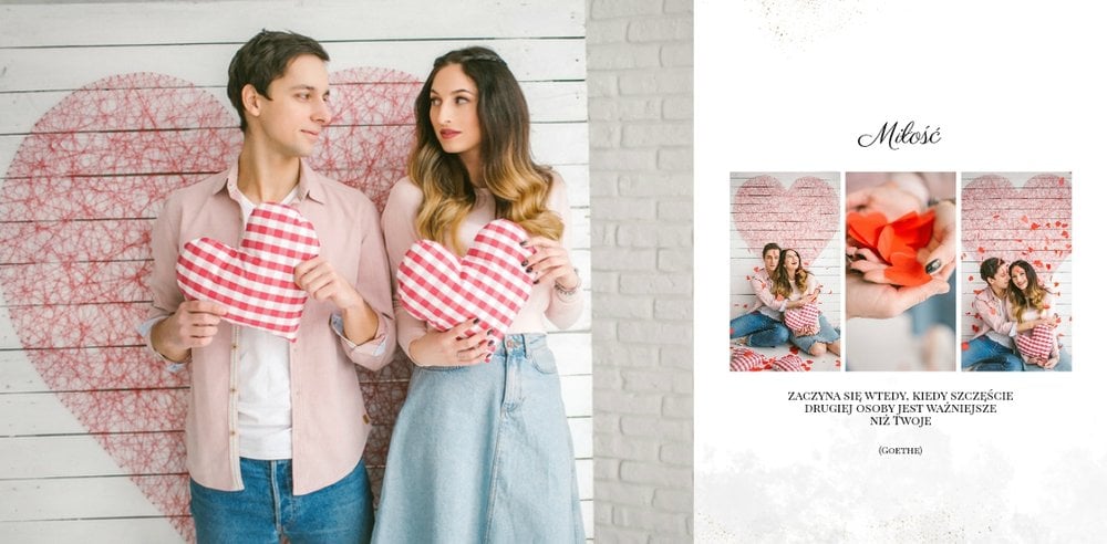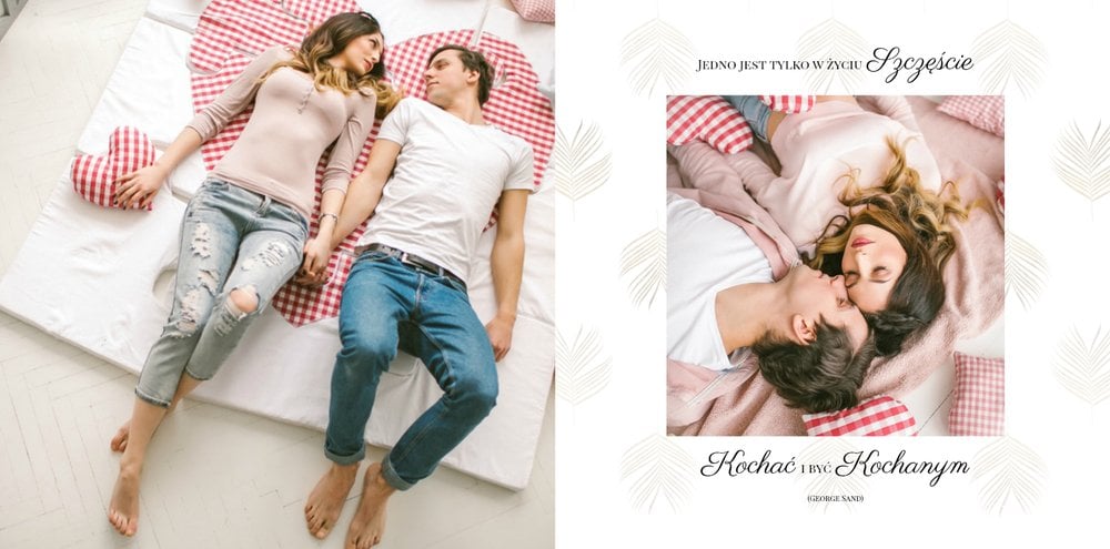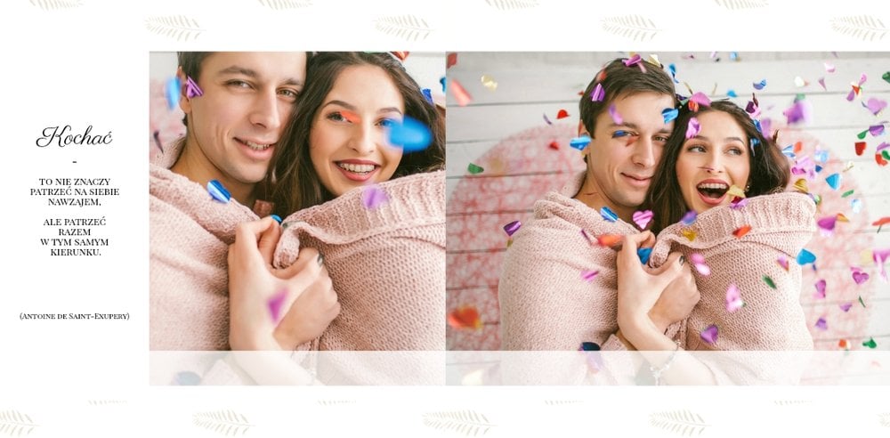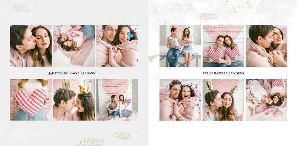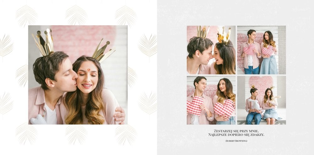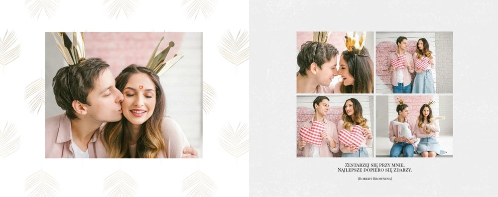 Z szablonem Narzeczeni stworzycie niezwykłą fotoksiążkę z wyjątkowymi zdjęciami z sesji narzeczeńskiej. Delikatne zdobienia, piękne cytaty i oryginalne układy zdjęć sprawią, że Wasza pamiątka będzie wywoływać wzruszenie przez wiele, wiele lat. Spraw radość Tobie i Twoim bliskim, zaprojektuj piękną książkę z szablonem Narzeczeni.