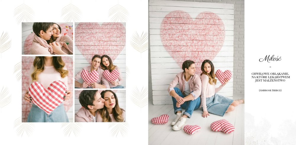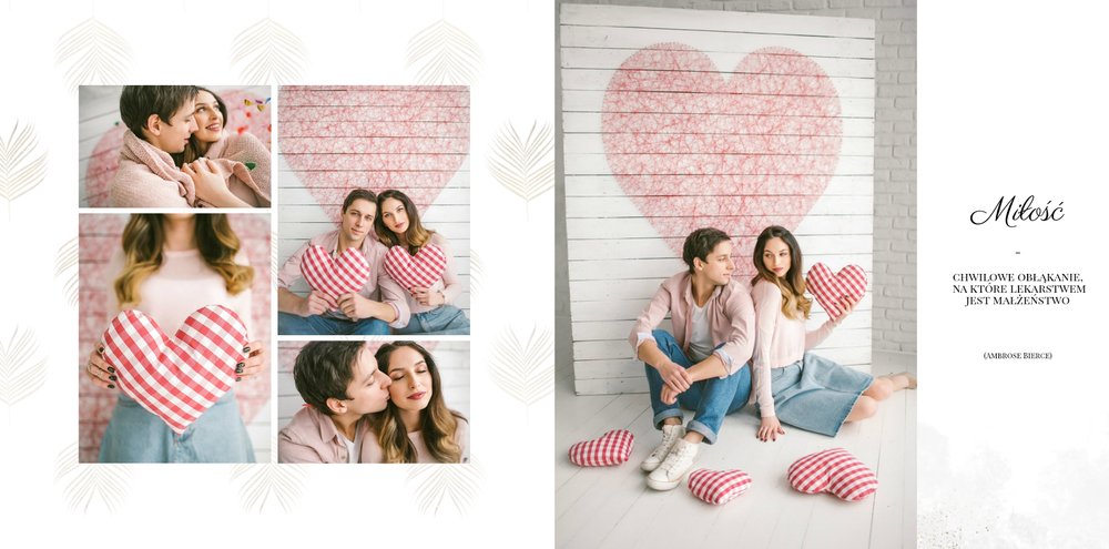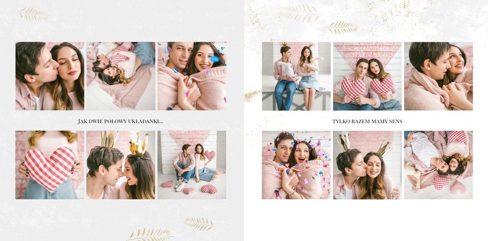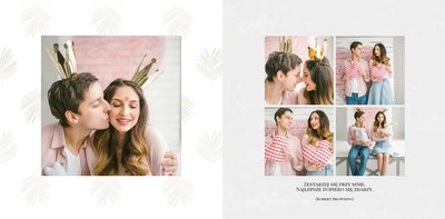 Z szablonem Narzeczeni stworzycie niezwykłą fotoksiążkę z wyjątkowymi zdjęciami z sesji narzeczeńskiej. Delikatne zdobienia, piękne cytaty i oryginalne układy zdjęć sprawią, że Wasza pamiątka będzie wywoływać wzruszenie przez wiele, wiele lat. Spraw radość Tobie i Twoim bliskim, zaprojektuj piękną książkę z szablonem Narzeczeni.