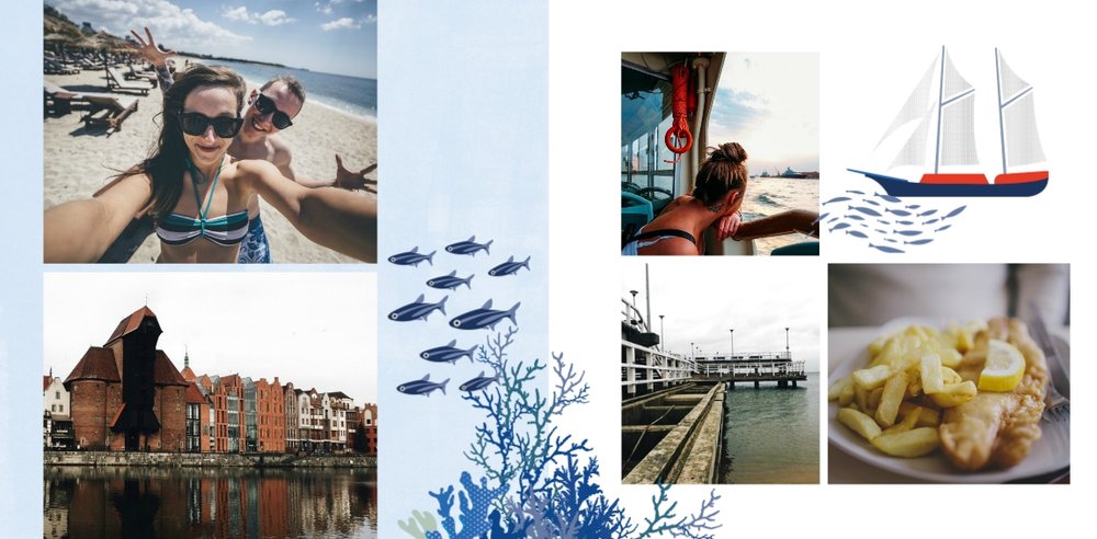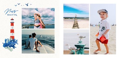Wakacje nad pięknym Bałtykiem? Zatem ten szablon został stworzony z myślą o Twoim wypoczynku nad bałtyckim morzem. Wewnątrz fotoksiążki znajdziesz przepiękne elementy graficzne, które nie pozwolą Ci zapomnieć o Bałtyku, a także w oryginalny sposób przyozdobią Twoje piękne zdjęcia.