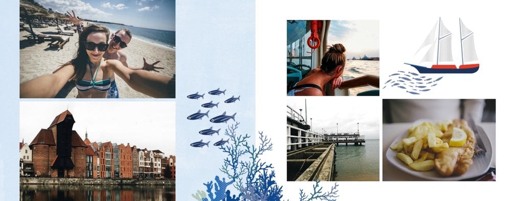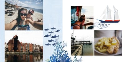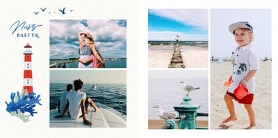 Wakacje nad pięknym Bałtykiem? Zatem ten szablon został stworzony z myślą o Twoim wypoczynku nad bałtyckim morzem. Wewnątrz fotoksiążki znajdziesz przepiękne elementy graficzne, które nie pozwolą Ci zapomnieć o Bałtyku, a także w oryginalny sposób przyozdobią Twoje piękne zdjęcia.