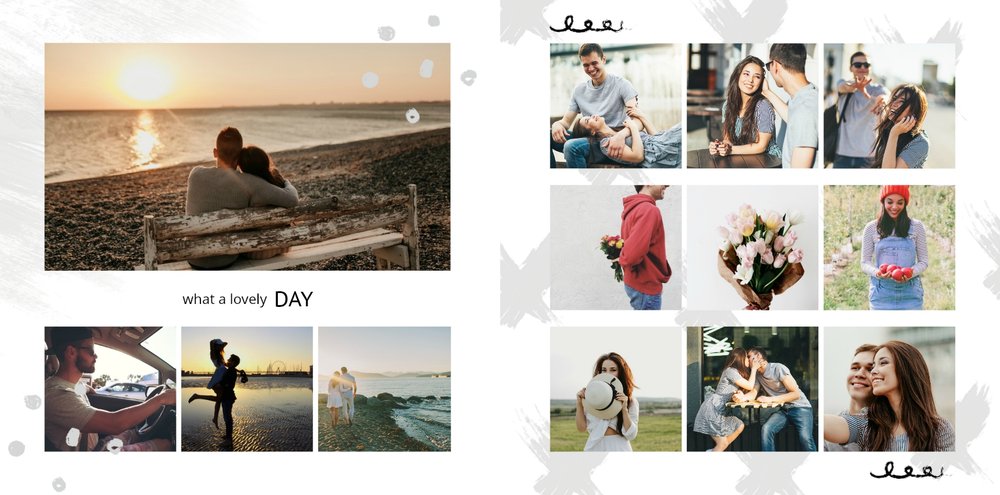 Nasza wielka miłość to szablon dzięki któremu stworzysz wyjątkowy prezent swojej drugiej połówce. Minimalistyczna forma i oryginalne układy zdjęć sprawią, że fotoksiążka z tym szablonem będzie piękną pamiątką na długi, długi czas!