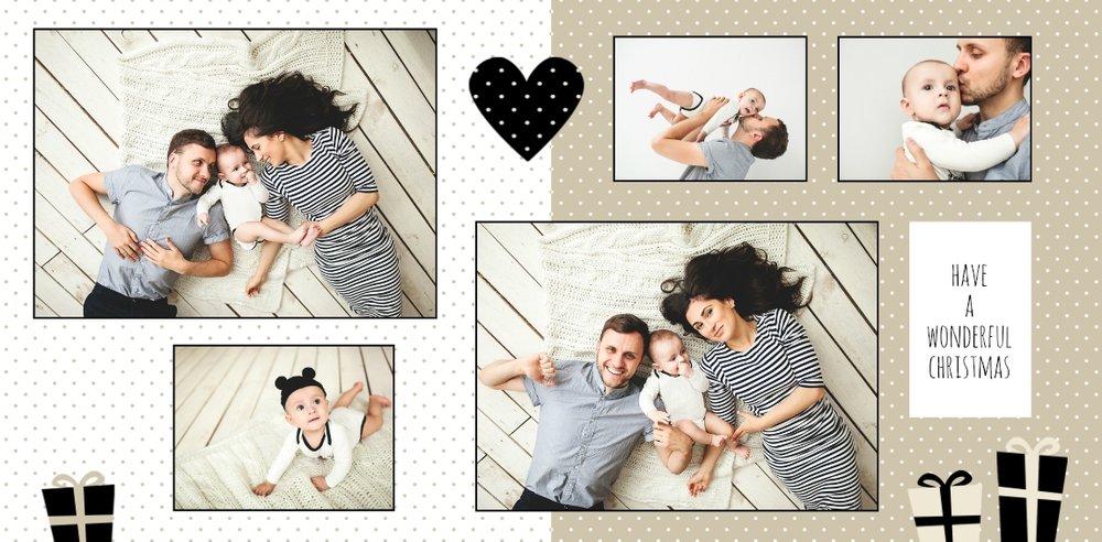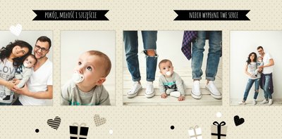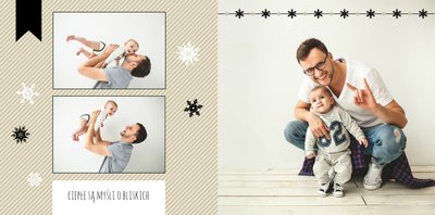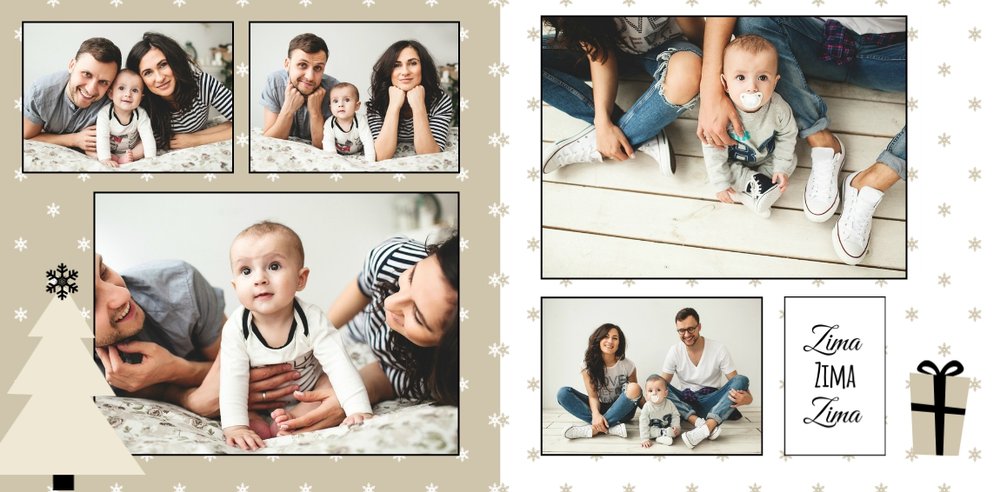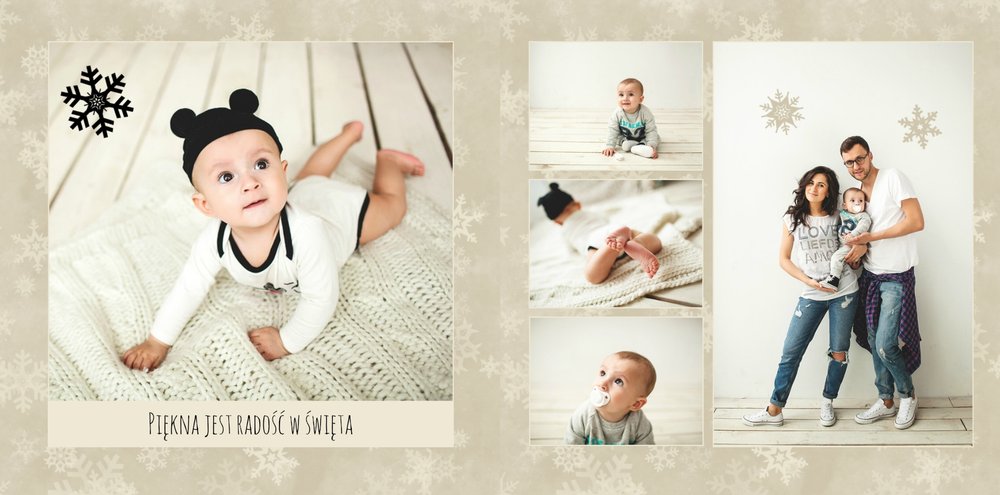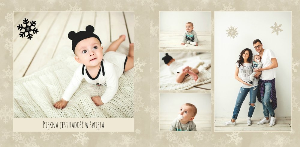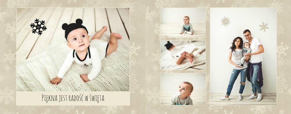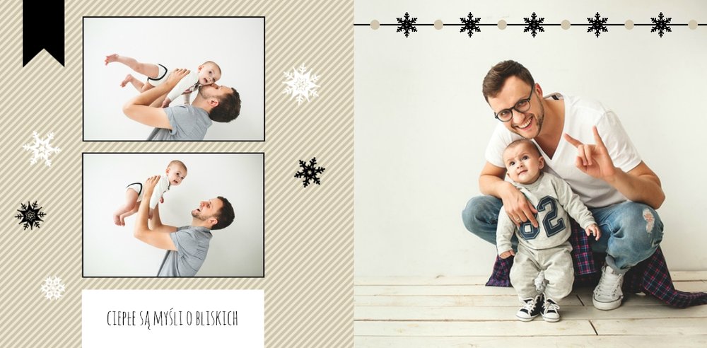 Rodzinne fotografie zasługują na piękną oprawę. Wydrukuj je w postaci fotoksiążki zaprojektowanej przy użyciu szablonu "Rodzina jest najważniejsza" - będzie to piękna pamiątka i najlepszy prezent pod choinkę dla bliskiej osoby. Szablon delikatny, zawierający zimowe, świąteczne motywy oraz klimatyczne tła. Propozycje tekstów i życzeń można dowolnie modyfikować. Usuwając akcenty świąteczne, otrzymamy szablon uniwersalny, typu "everyday life".