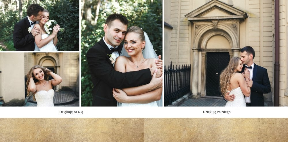 Wasze ślubne zdjęcia zasługują na oryginalną oprawę. Z szablonem Ona i On wszystkie kadry z najważniejszego dnia w Waszym życiu będą wyjątkowe. Minimalistyczna grafika, prosty układ zdjęć, jasne tła oraz charakterystyczna czcionka sprawią, że książka będzie piękną pamiątką na lata. Szablon Ona i On tworzy serię z szablonem Dla naszych Rodziców.