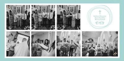 Chrzest Święty to szczególna uroczystość w życiu całej rodziny, która wymaga wyjątkowej oprawy. Zaprojektuj fotoksiążkę z szablonem Pamiątka Chrztu Świętego. W szablonie dominują delikatne kolory – niebieski oraz beż. Projekt z elegancką ornamentyką pięknie skomponuje się ze zdjęciami z uroczystości. Szablon idealny jako pamiątka Chrzcin zarówno dziewczynki, jak i chłopca.