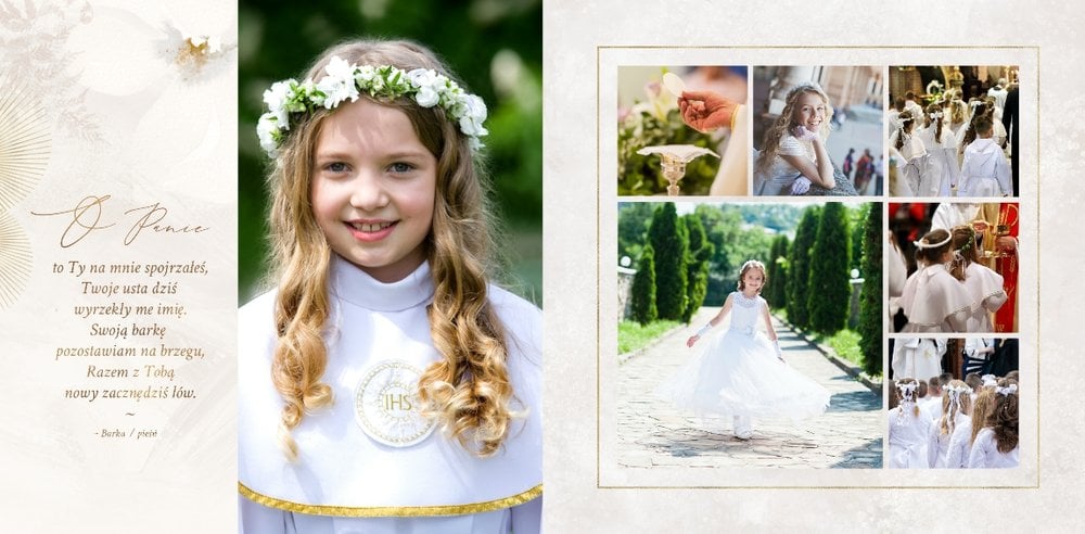 Fotoksiążka z tym szablonem to zarówno świetna pamiątka dla dziecka, jak i prezent dla najbliższych osób, które uczestniczyły z Wami w tym dniu - Rodziców Chrzestnych i Dziadków.