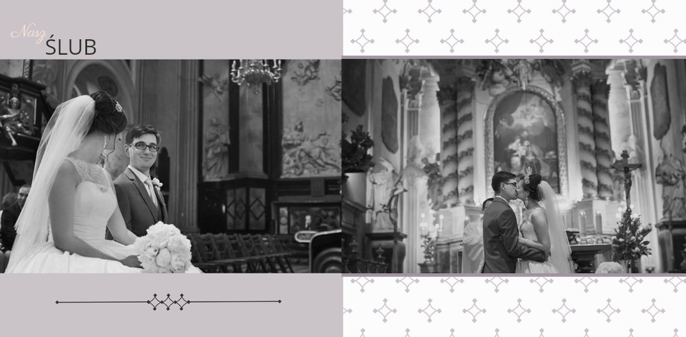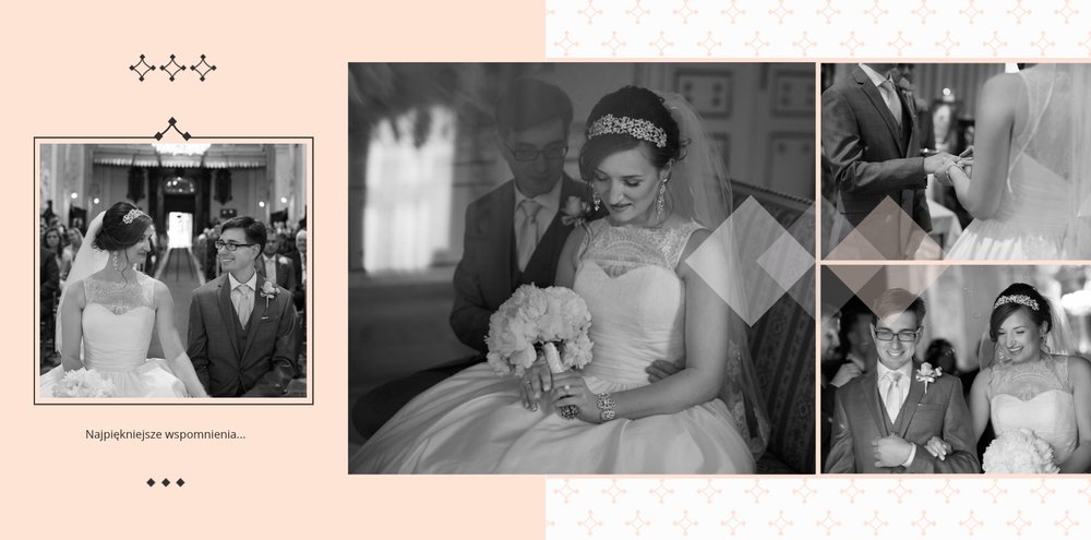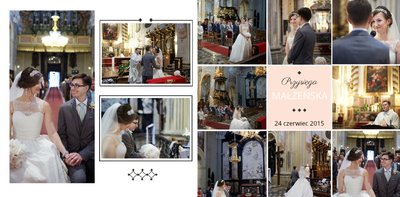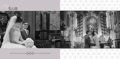 Kolejne rocznice ślubne i prezenty ślubne, przypominają o wyjątkowym dniu ślubu. Warto samodzielnie stworzyć pamiątkę z tego wydarzenia. Z szablonem “Pamiątka Ślubu” zaprojektujecie fotoksiążkę, która w każdej chwili zabierze was w podróż w czasie i przypomni o Waszym Najważniejszym Dniu. Szablon ma nowoczesny styl, zdobią go graficzne ornamenty. Strony zaaranżowano tak, by dodać zdjęcia w różnych formatach, również seriach. Fotografia ślubna uwieczniona w fotoksiążce to pomysł na podziękowania dla gości i prezent na rocznice ślubu.