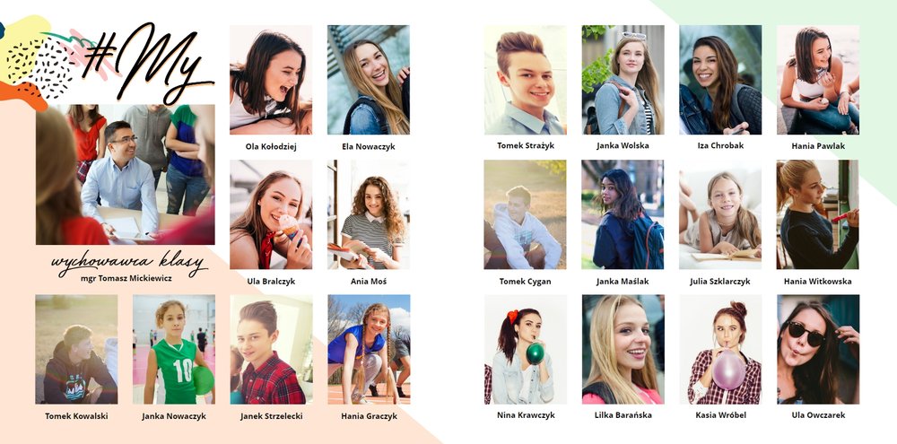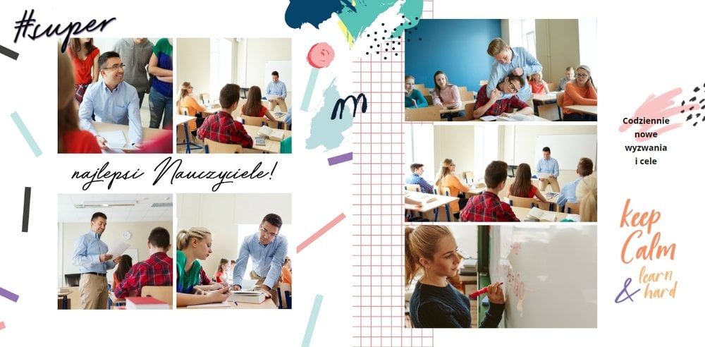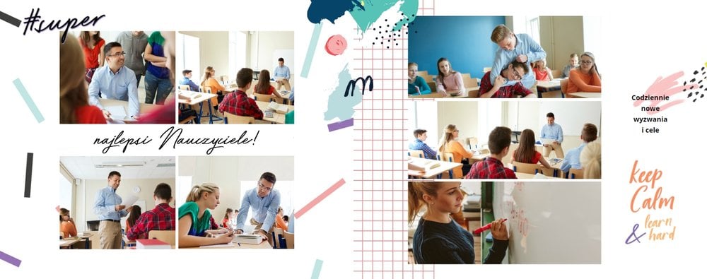 W szablonie "Pamiątka ze Szkoły Podstawowej" znajdziesz mnóstwo miejsca na szkolne wspomnienia - wycieczki klasowe, apele i dyskoteki szkolne. Tak wiele chwil możesz zamieści wewnątrz tego oryginalnego szablonu. Białe strony uzupełnione są o kolorowe elementy graficzne i oryginalne grafiki.
