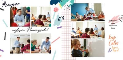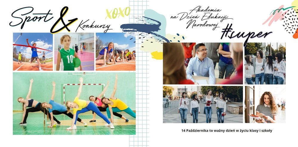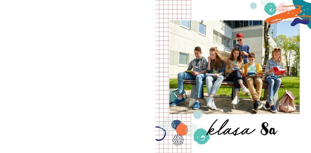 W szablonie "Pamiątka ze Szkoły Podstawowej" znajdziesz mnóstwo miejsca na szkolne wspomnienia - wycieczki klasowe, apele i dyskoteki szkolne. Tak wiele chwil możesz zamieści wewnątrz tego oryginalnego szablonu. Białe strony uzupełnione są o kolorowe elementy graficzne i oryginalne grafiki.