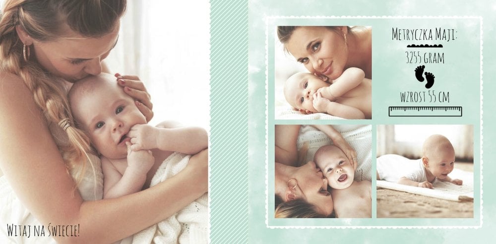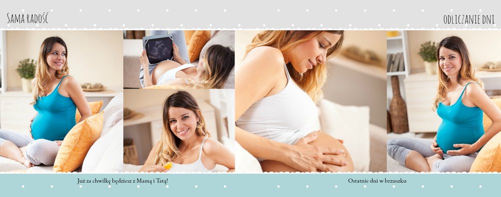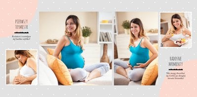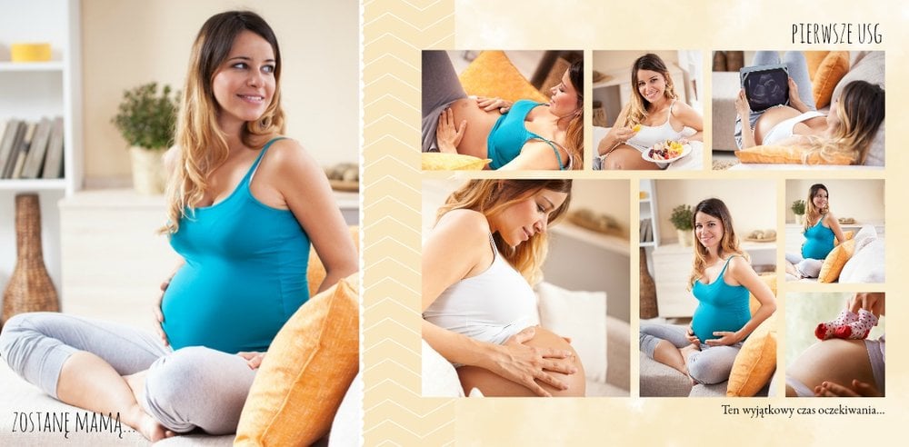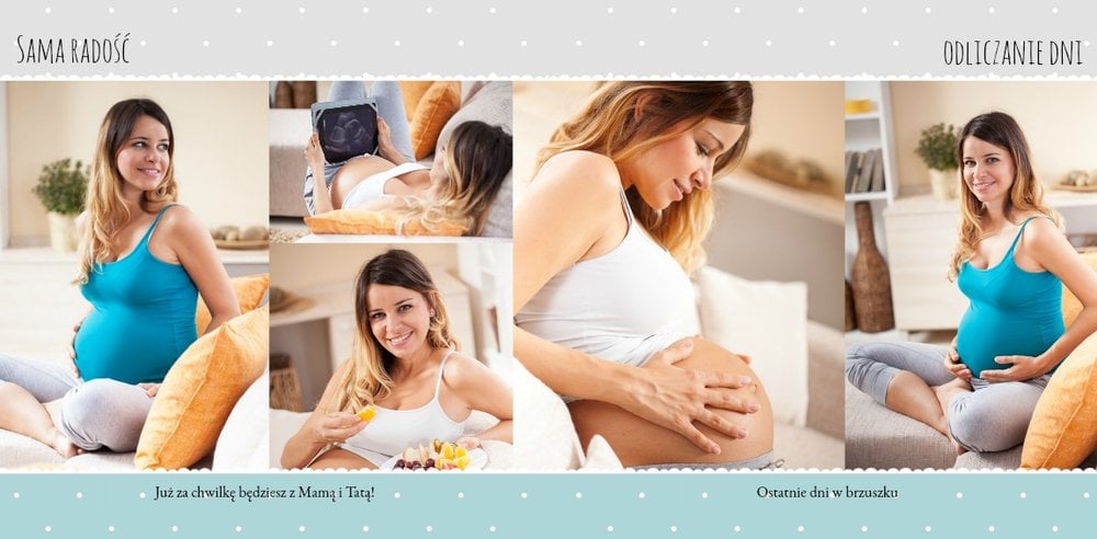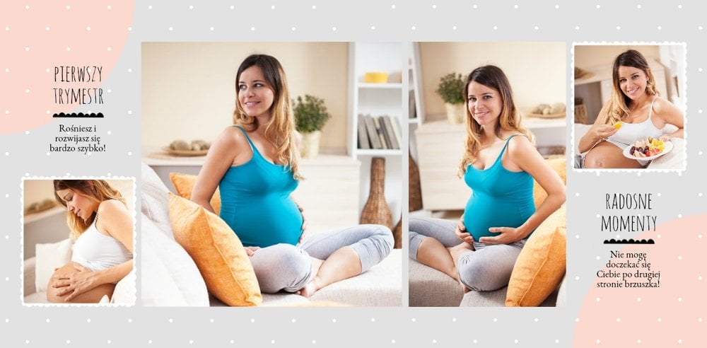 Pamiętnik ciąży to wyjątkowy szablon upamiętniający ten cudowny czas, jakim jest czas oczekiwania na dziecko. To również świetne miejsce na umieszczenie zdjęć z sesji brzuszkowej lub na umieszczenie całej zdjęciowej historii oczekiwania na maluszka. Pastelowe, uniwersalne kolory, miejsca na wyjątkowe fotografie i ważne notatki, dodatkowo urozmaicą fotoksiążkę. Stwórz własny pamiętnik ciążowy, zachowaj wspomnienia z tego niezwykłego czasu oczekiwania!