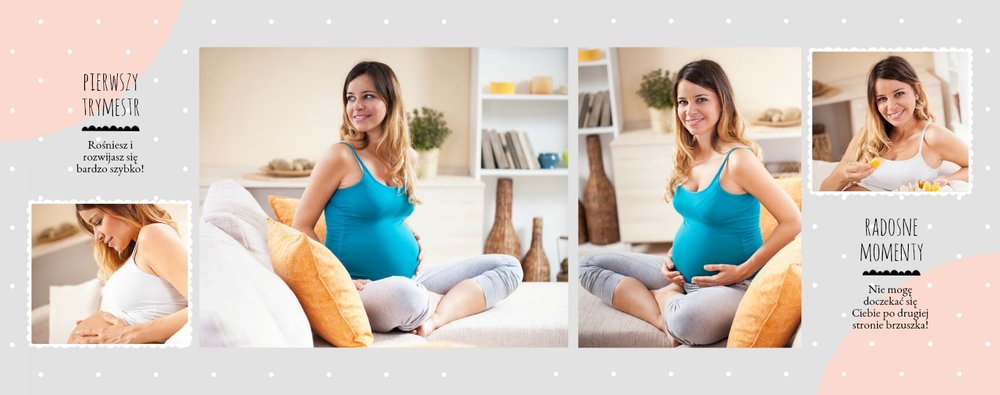 Pamiętnik ciąży to wyjątkowy szablon upamiętniający ten cudowny czas, jakim jest czas oczekiwania na dziecko. To również świetne miejsce na umieszczenie zdjęć z sesji brzuszkowej lub na umieszczenie całej zdjęciowej historii oczekiwania na maluszka. Pastelowe, uniwersalne kolory, miejsca na wyjątkowe fotografie i ważne notatki, dodatkowo urozmaicą fotoksiążkę. Stwórz własny pamiętnik ciążowy, zachowaj wspomnienia z tego niezwykłego czasu oczekiwania!